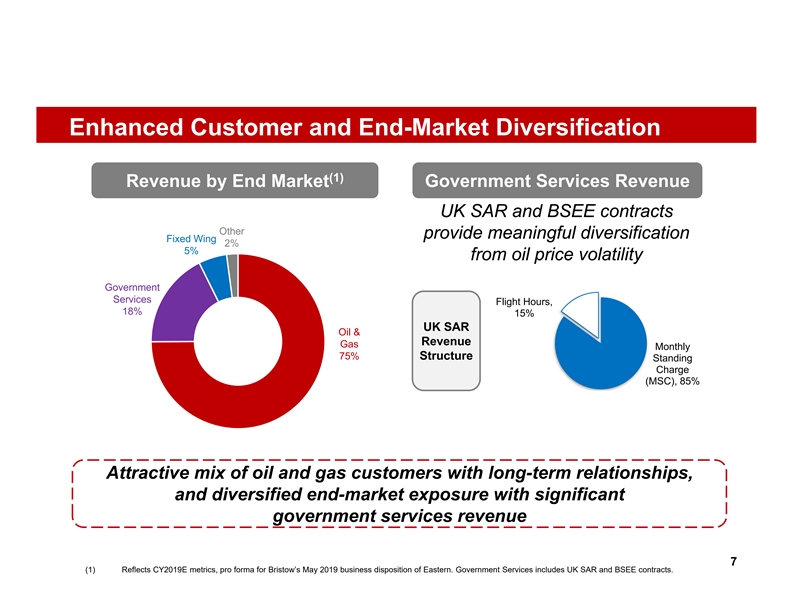 Complementary Fleet Mix AW189 6% Fixed Wing S92 6% 26% Light Twin 7% Single 303 Engine 16% AW139 20% Other Heavy / Medium 19% 6 Note: Reflects December 2019 fleet count, pro forma for Bristow’s pending sale of 14 H225s.Complementary Fleet Mix AW189 6% Fixed Wing S92 6% 26% Light Twin 7% Single 303 Engine 16% AW139 20% Other Heavy / Medium 19% 6 Note: Reflects December 2019 fleet count, pro forma for Bristow’s pending sale of 14 H225s.