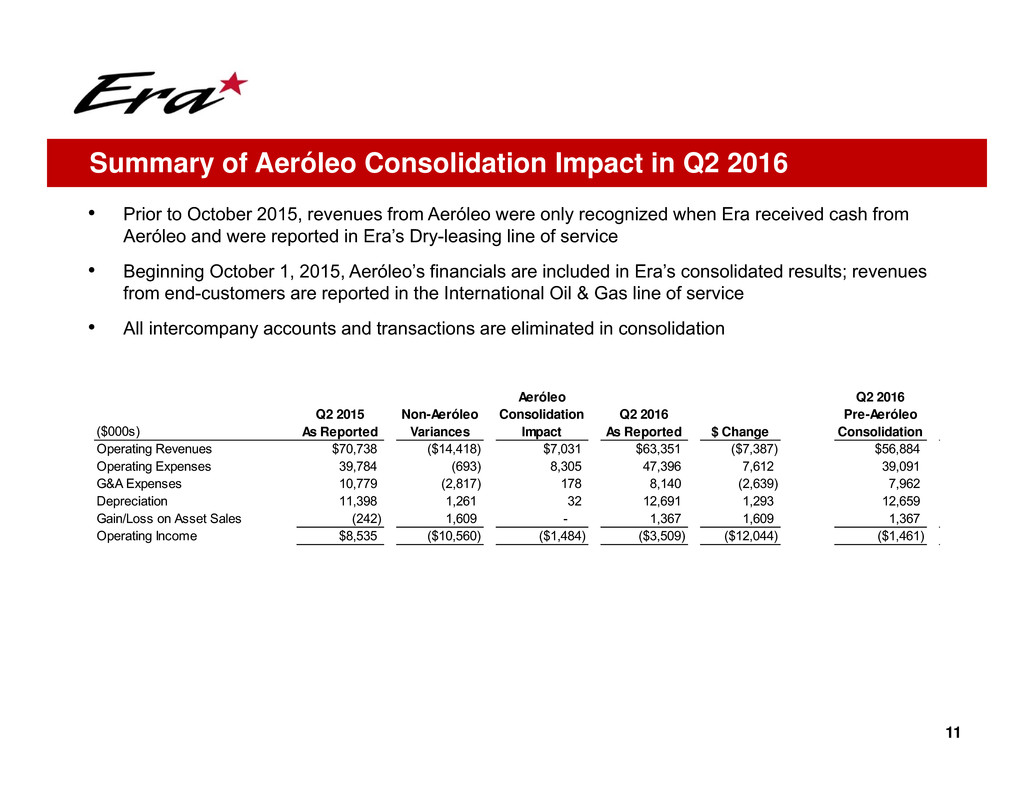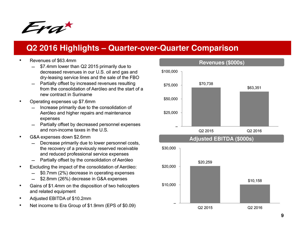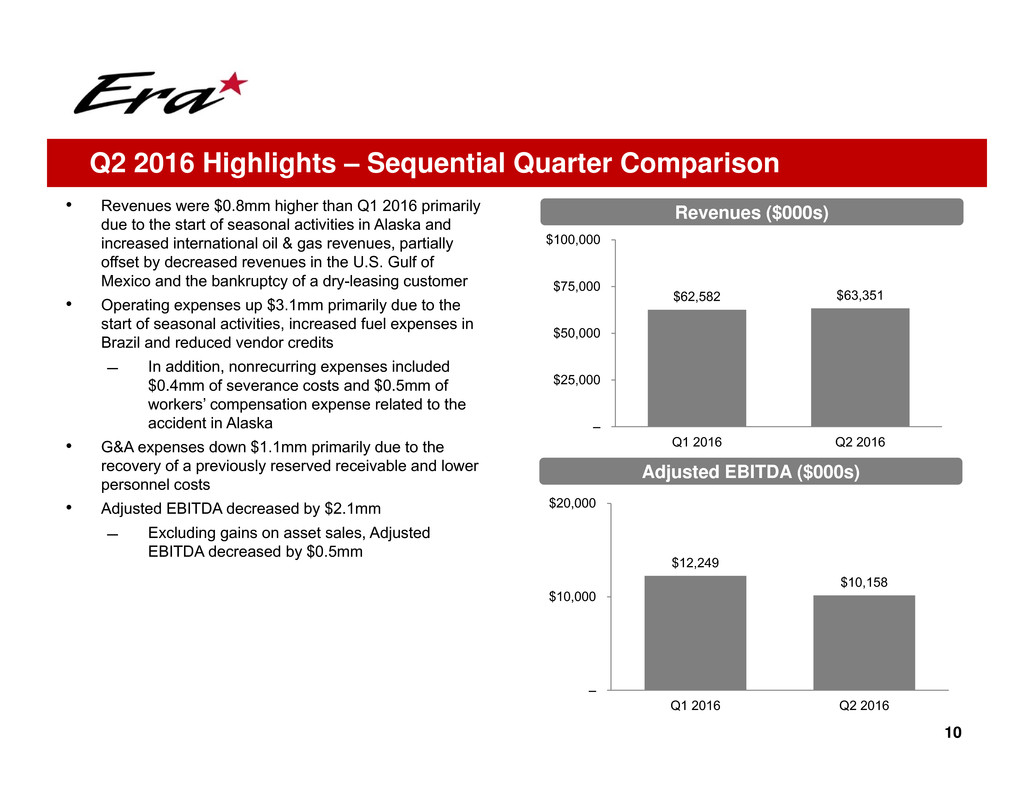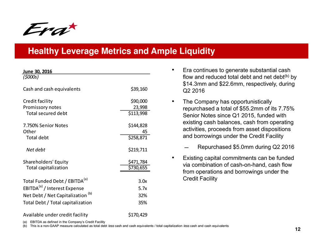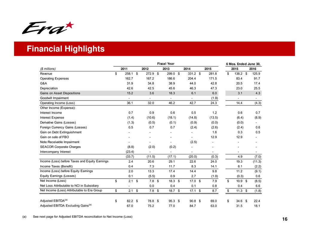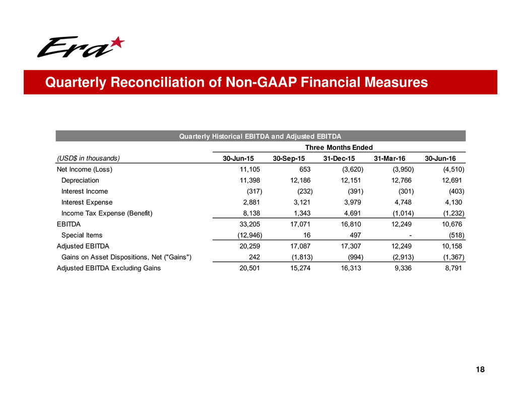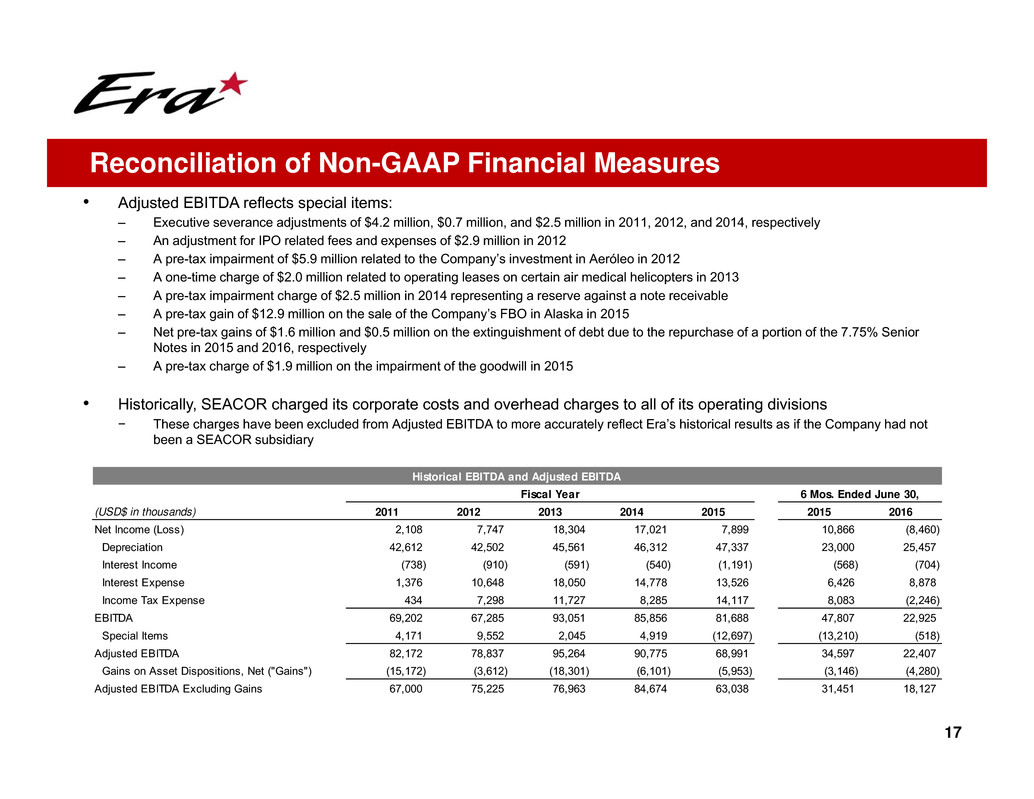 − These charges have been excluded from Adjusted EBITDA to more accurately reflect Era’s historical results as if the Company had not