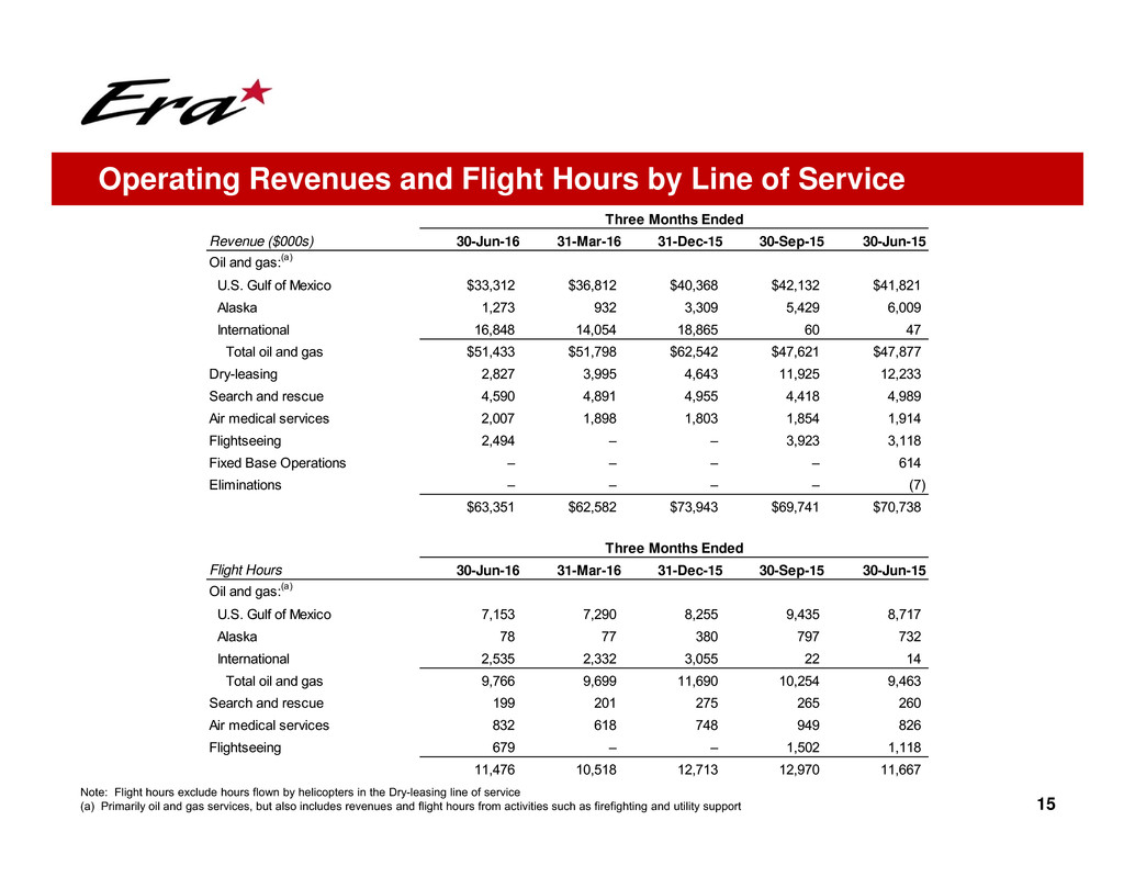 (a) Primarily oil and gas services, but also includes revenues and flight hours from activities such as firefighting and utility support