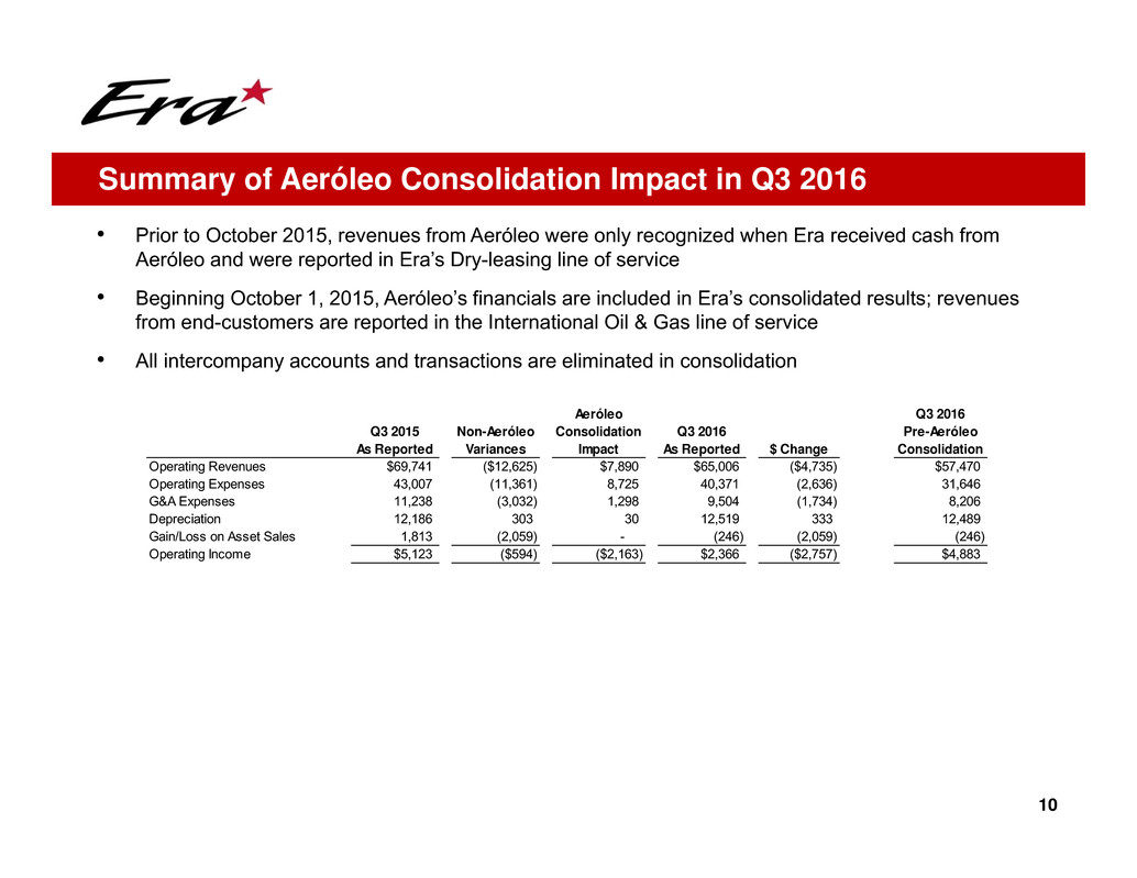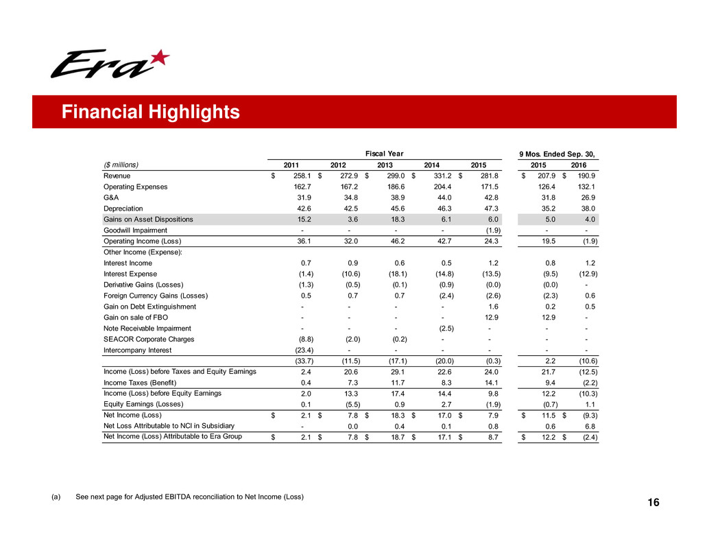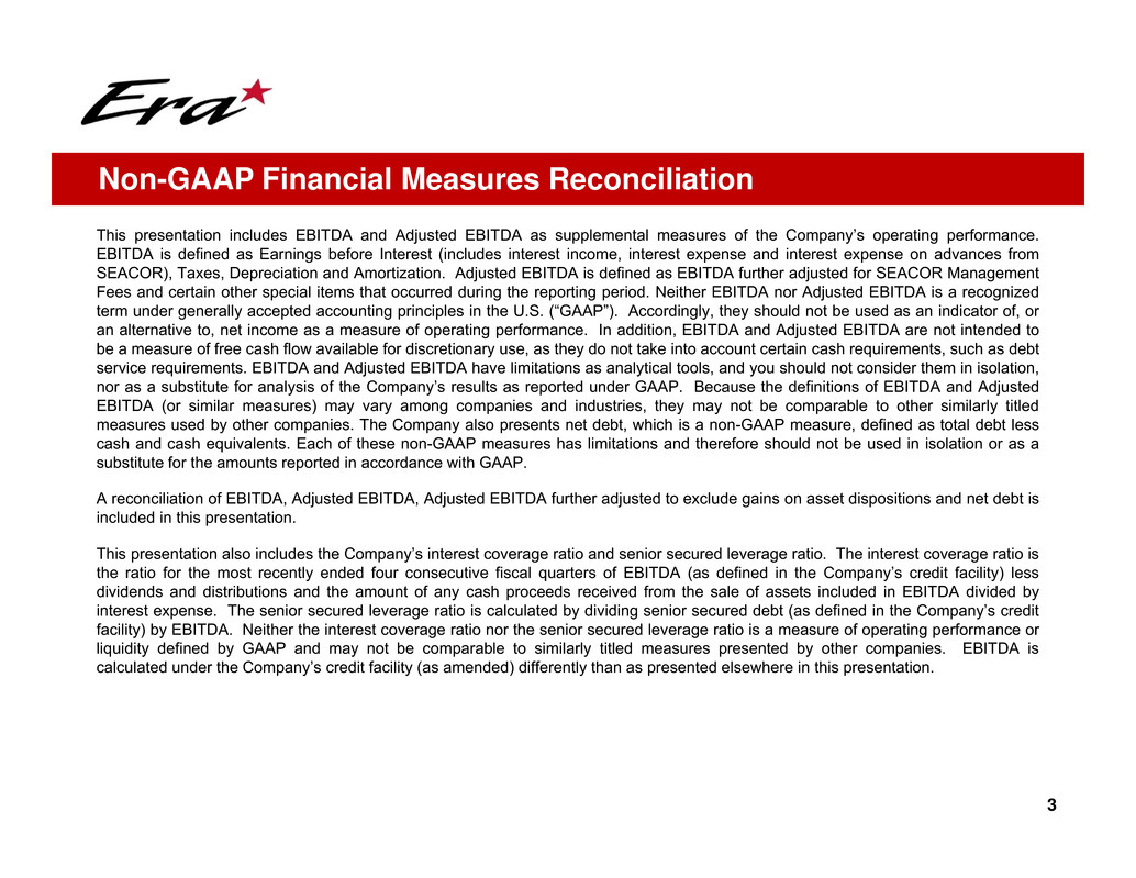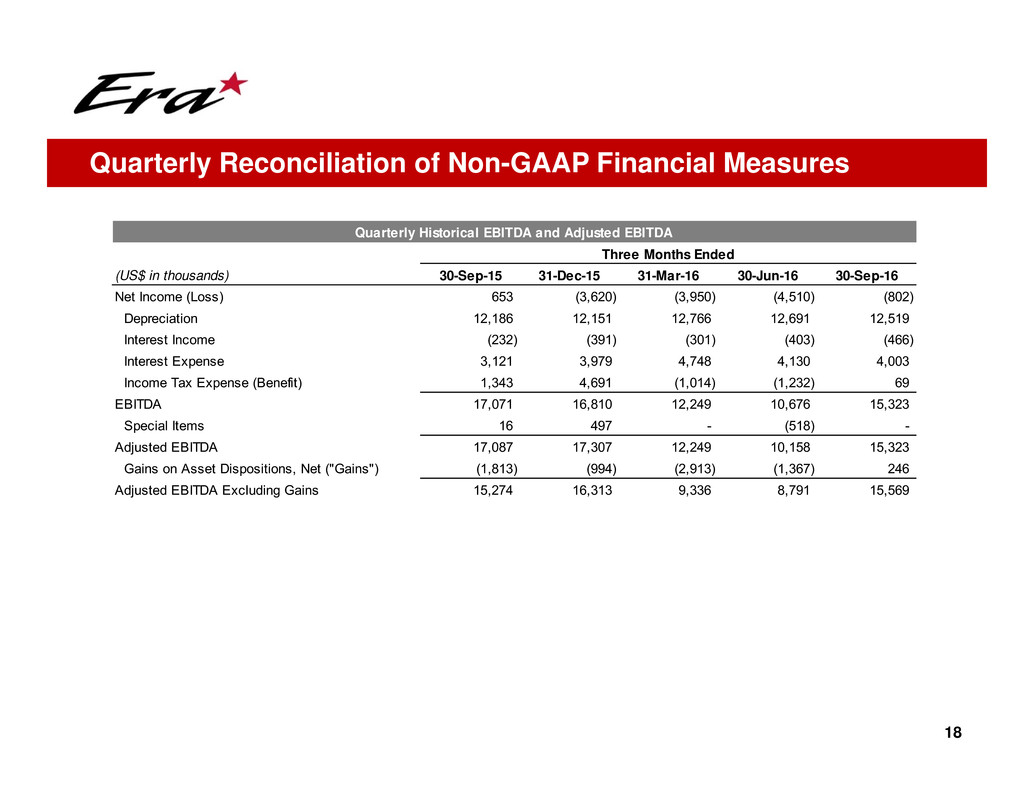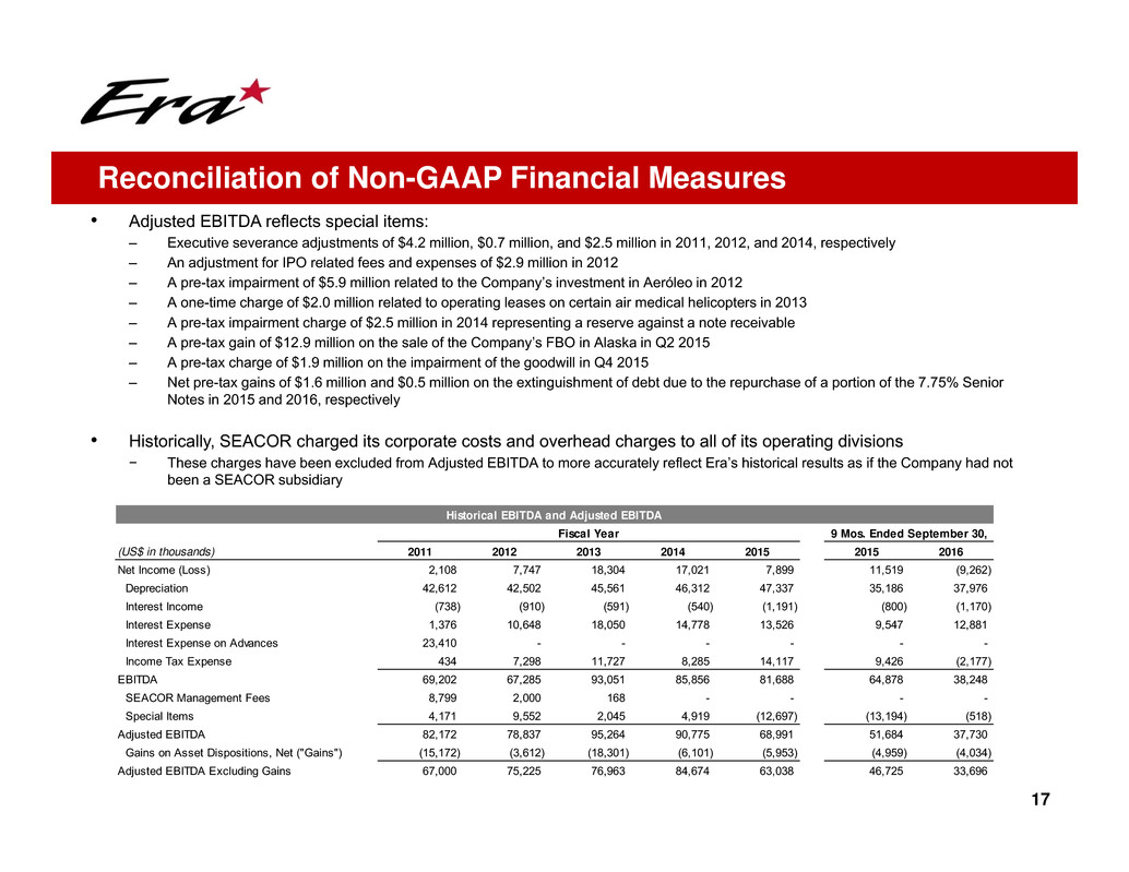 − These charges have been excluded from Adjusted EBITDA to more accurately reflect Era’s historical results as if the Company had not