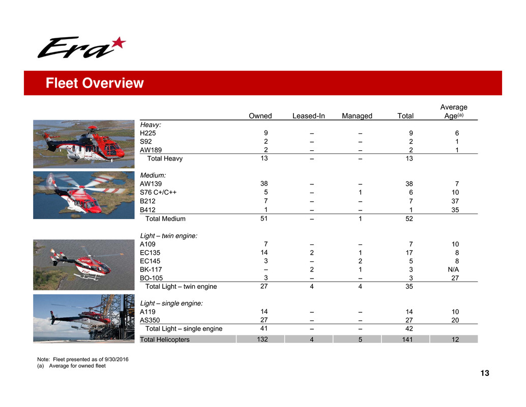 • Era owns 9 H225 helicopters: 5 located in the U.S., 3 located in Brazil and 1 located in Norway