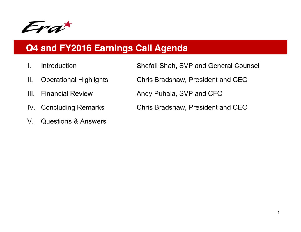 Q4 and FY2016 Earnings Call Agenda