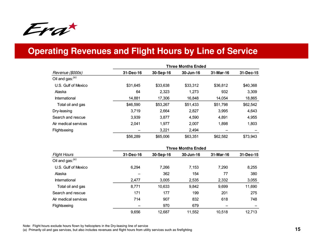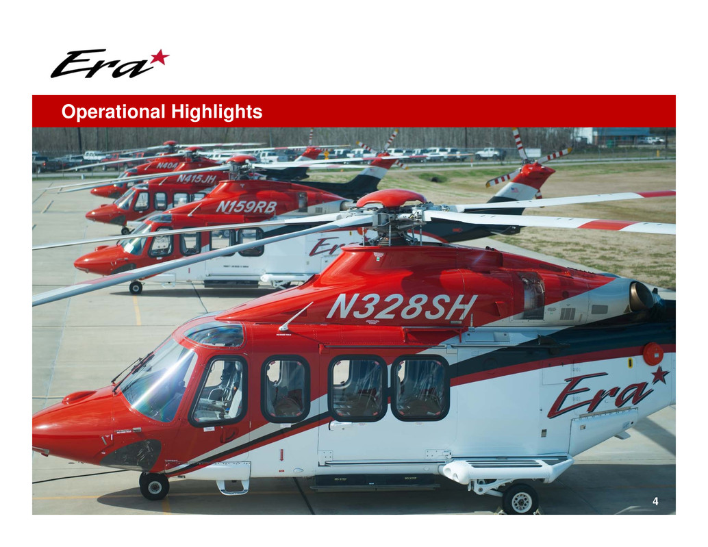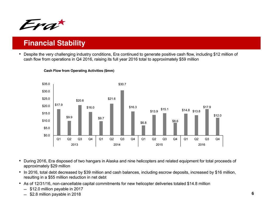 • Despite the very challenging industry conditions, Era continued to generate positive cash flow, including $12 million of