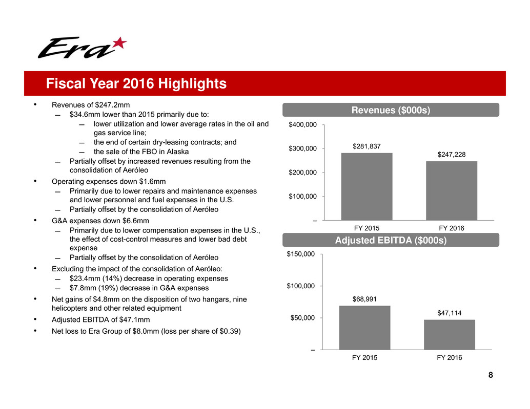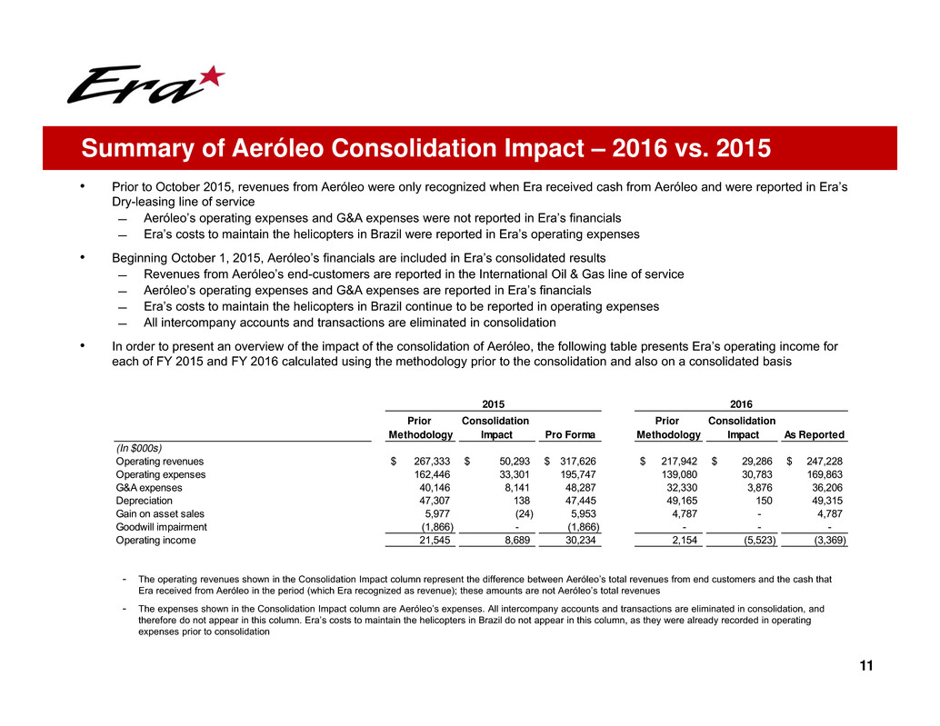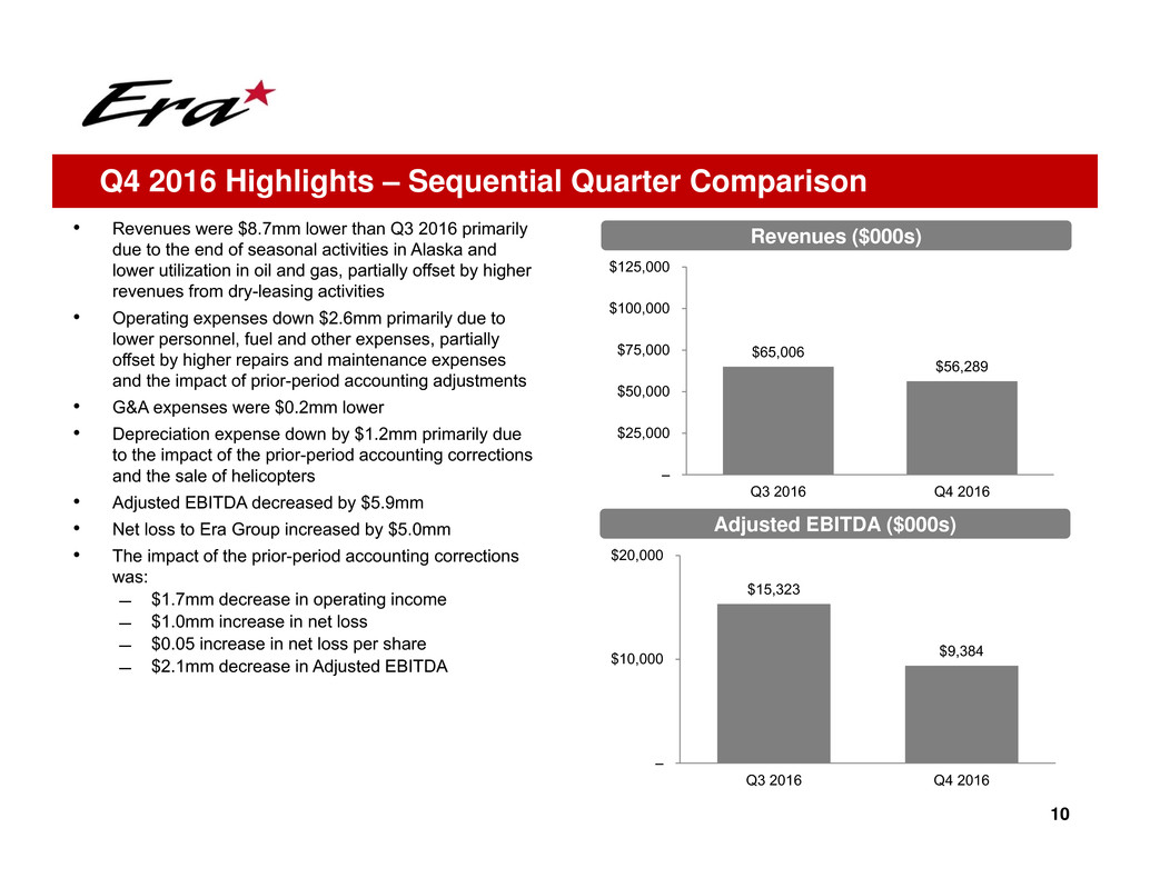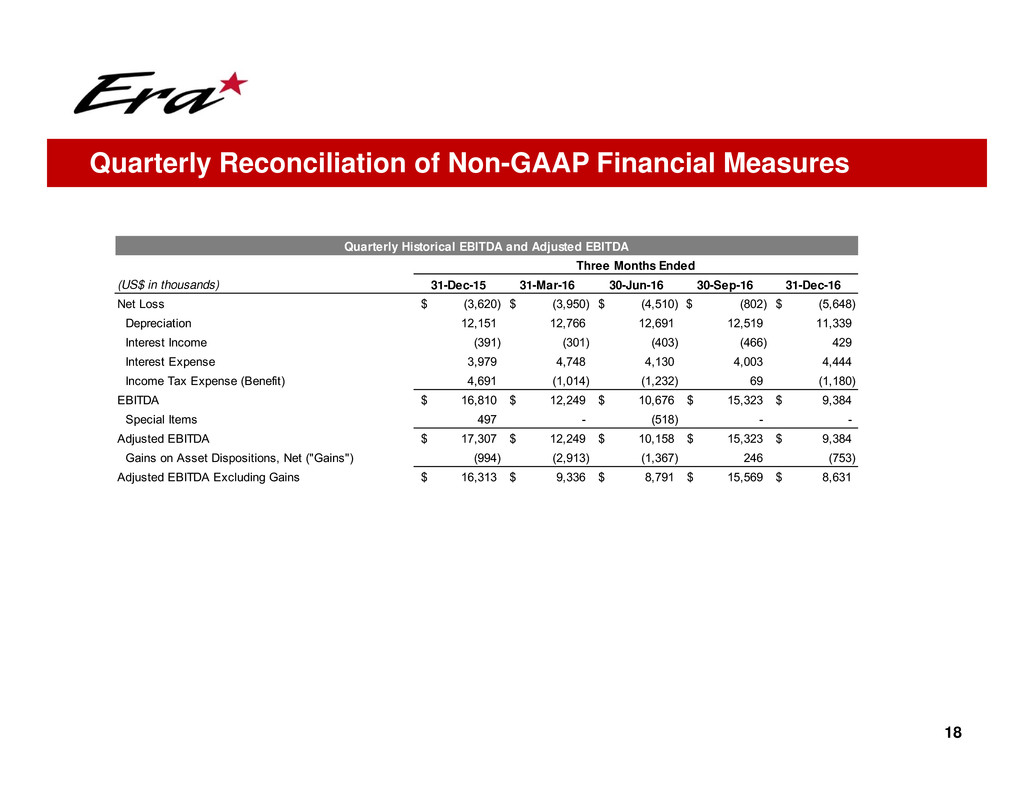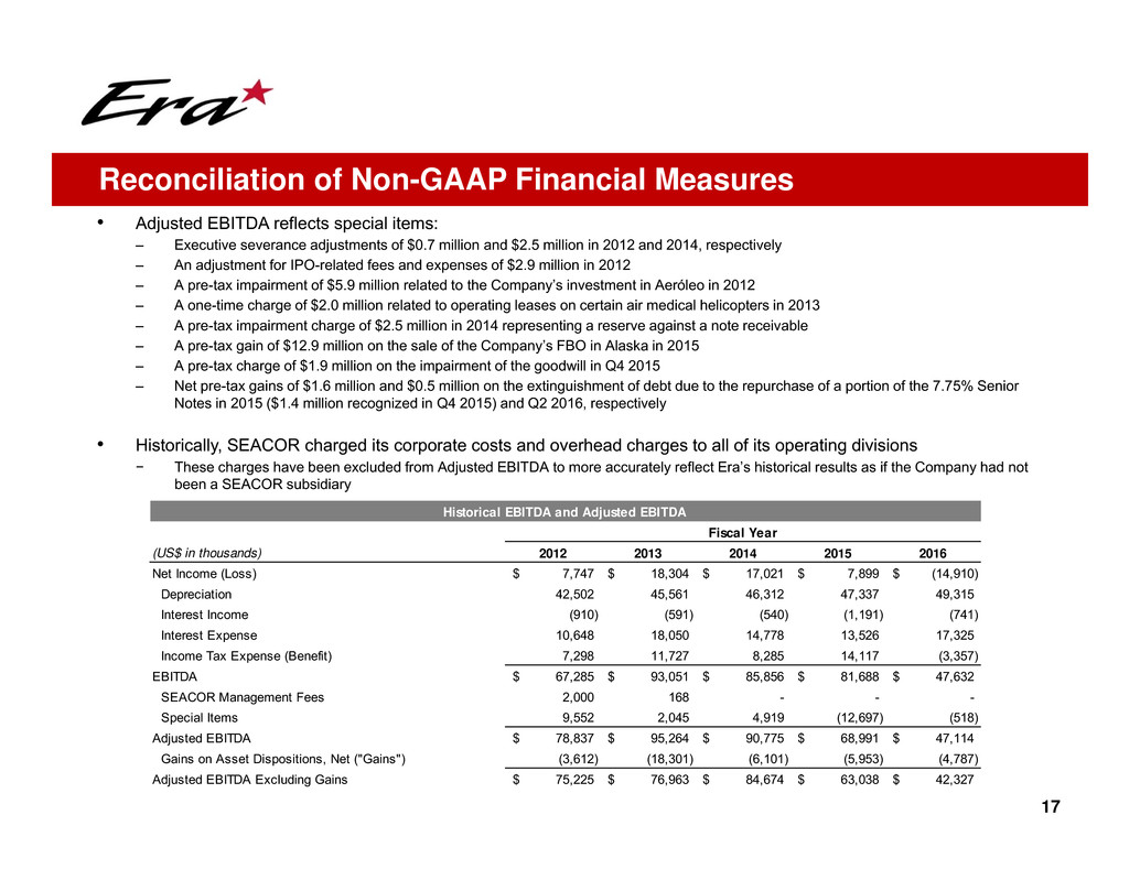 − These charges have been excluded from Adjusted EBITDA to more accurately reflect Era’s historical results as if the Company had not