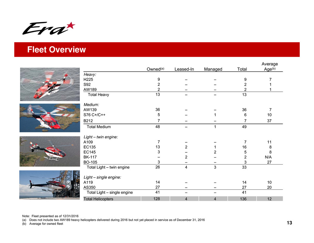 • Era owns 9 H225 helicopters: 5 located in the U.S., 3 located in Brazil and 1 located in Norway