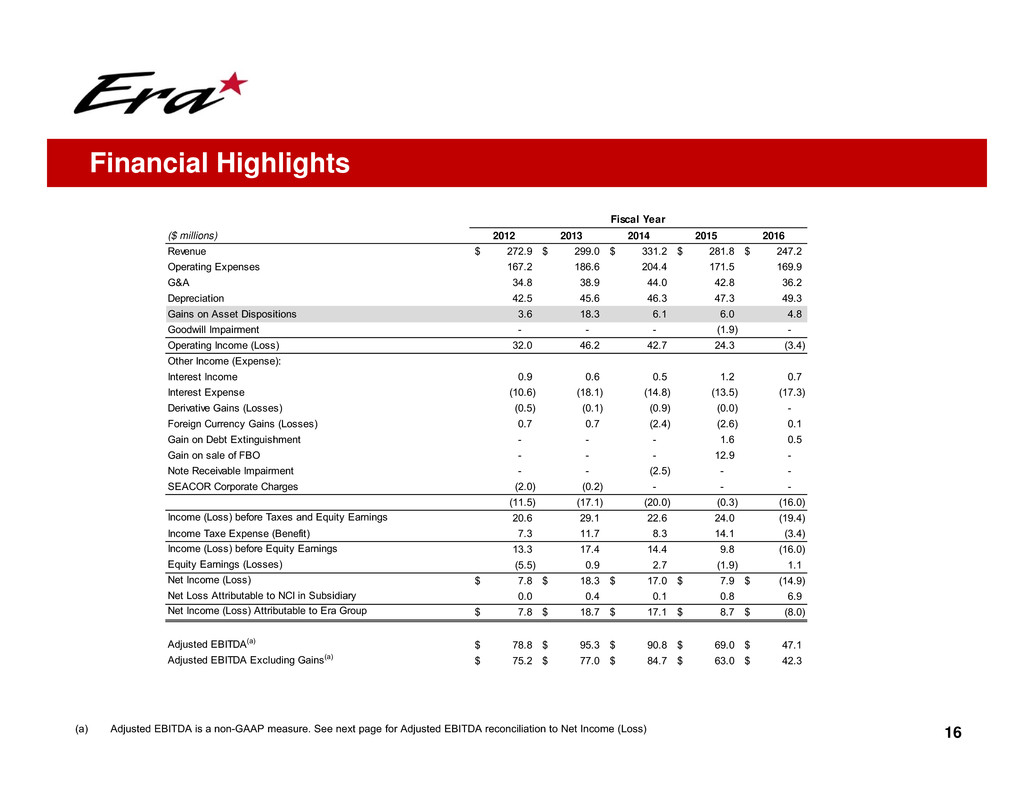 16(a) Adjusted EBITDA is a non-GAAP measure. See next page for Adjusted EBITDA reconciliation to Net Income (Loss)