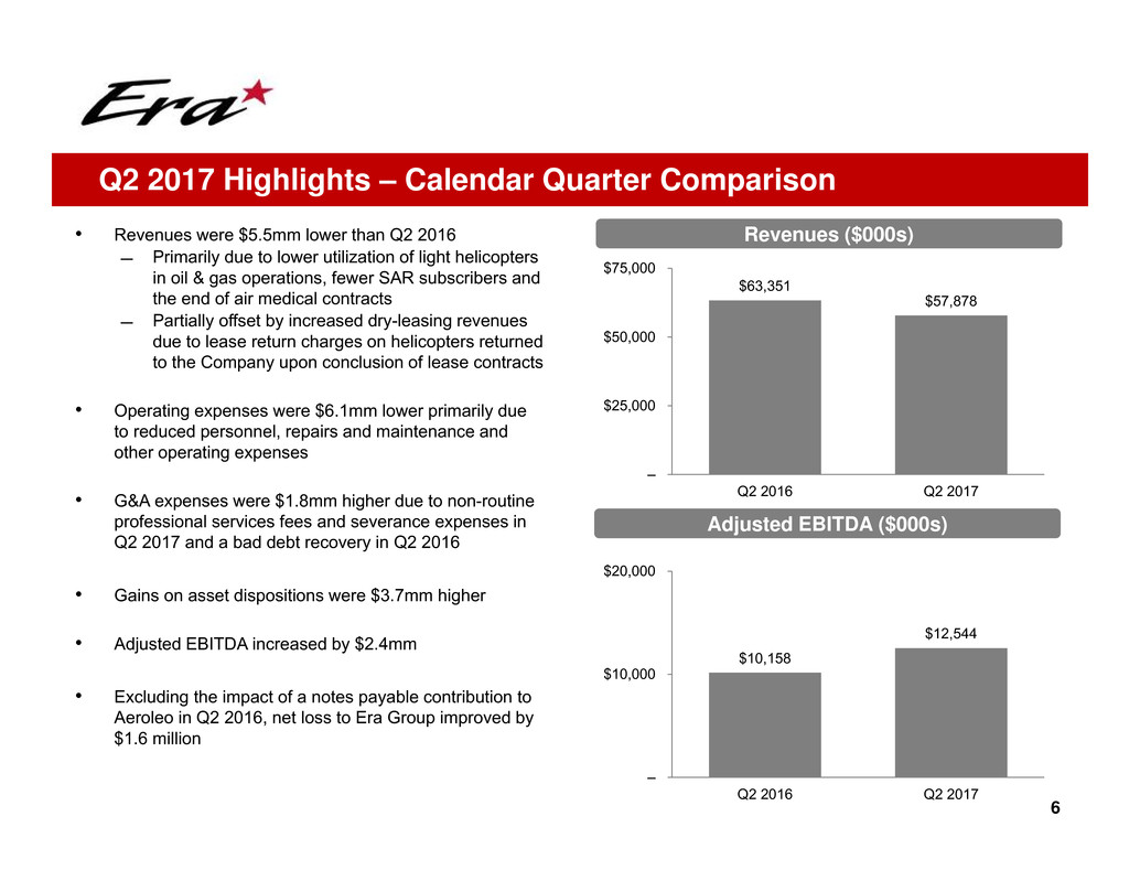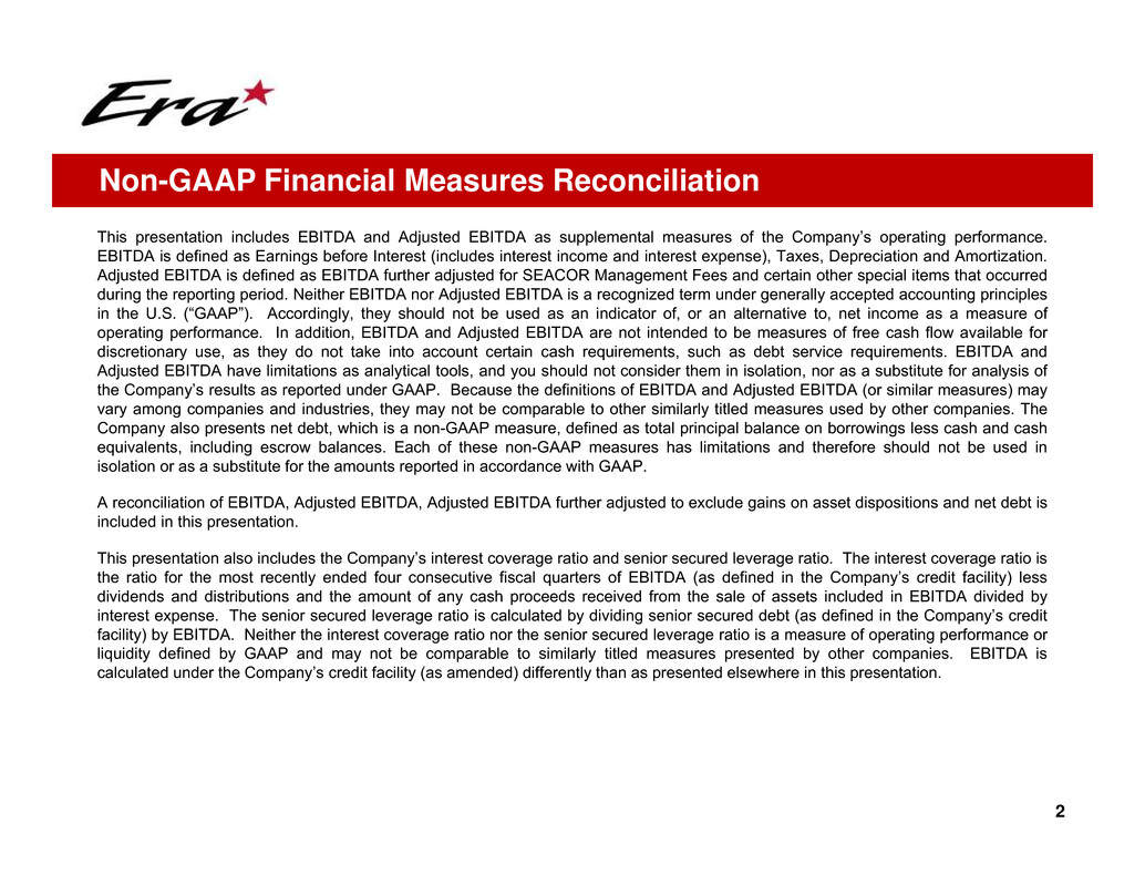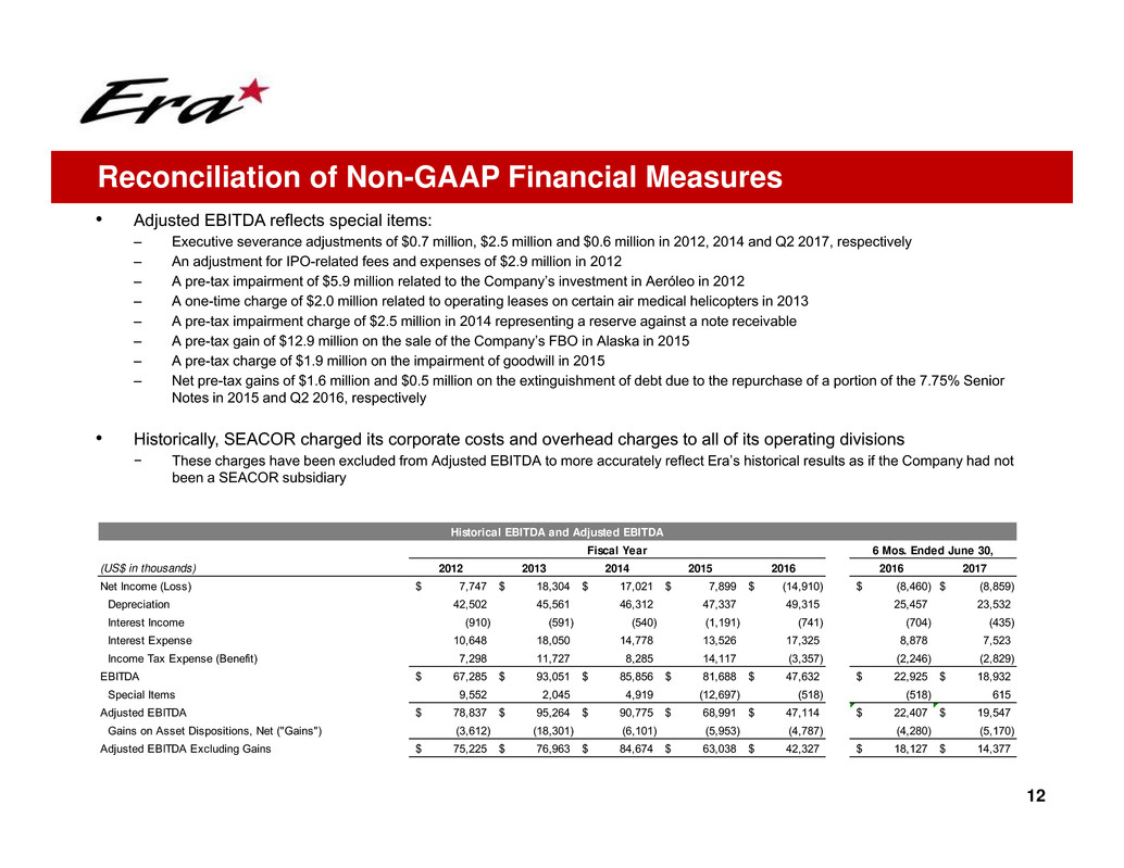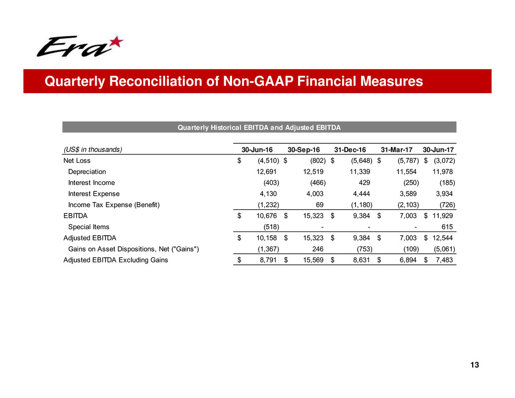 − These charges have been excluded from Adjusted EBITDA to more accurately reflect Era’s historical results as if the Company had not