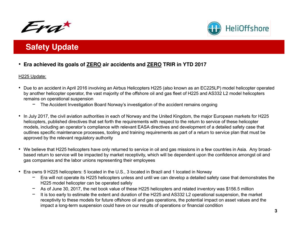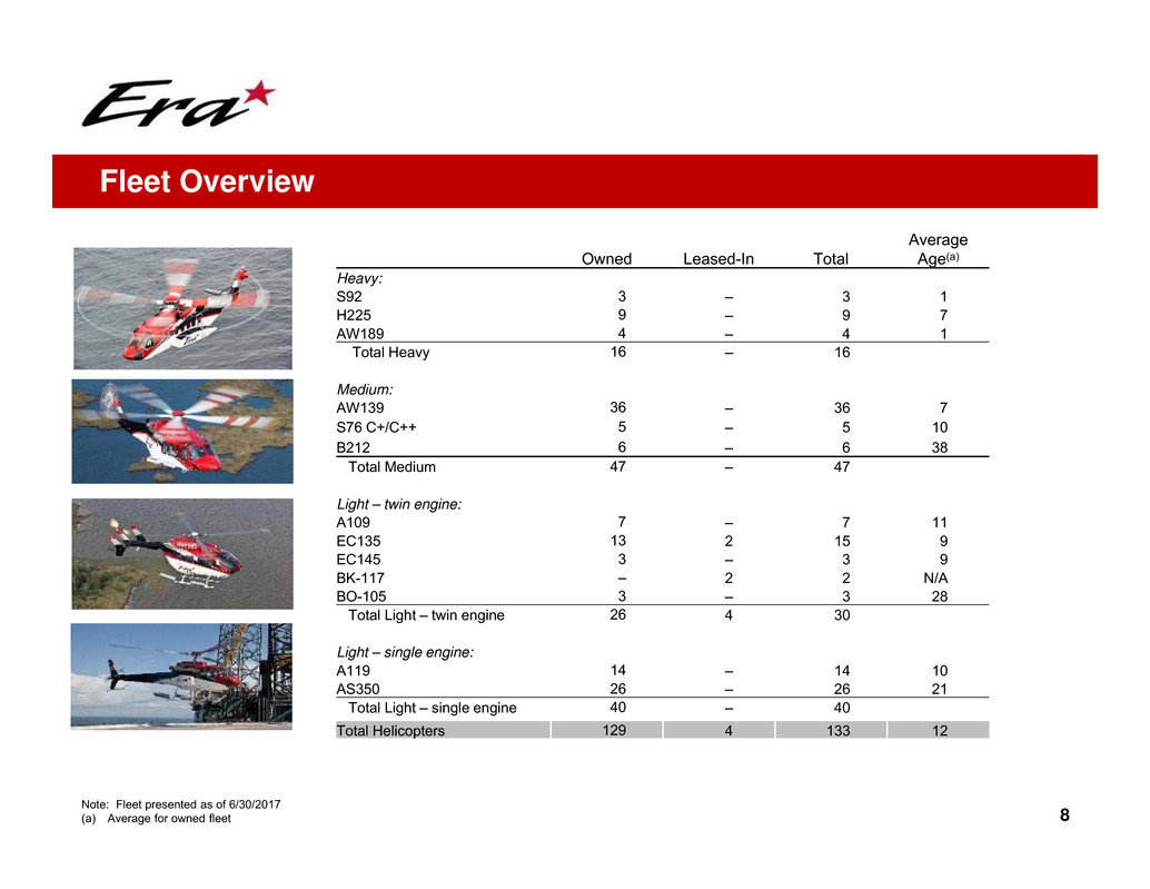 • Era owns 9 H225 helicopters: 5 located in the U.S., 3 located in Brazil and 1 located in Norway