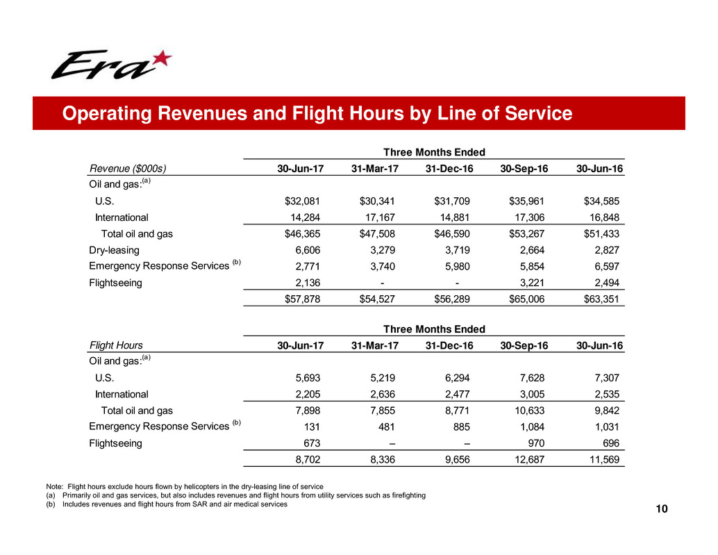 (a) Primarily oil and gas services, but also includes revenues and flight hours from utility services such as firefighting