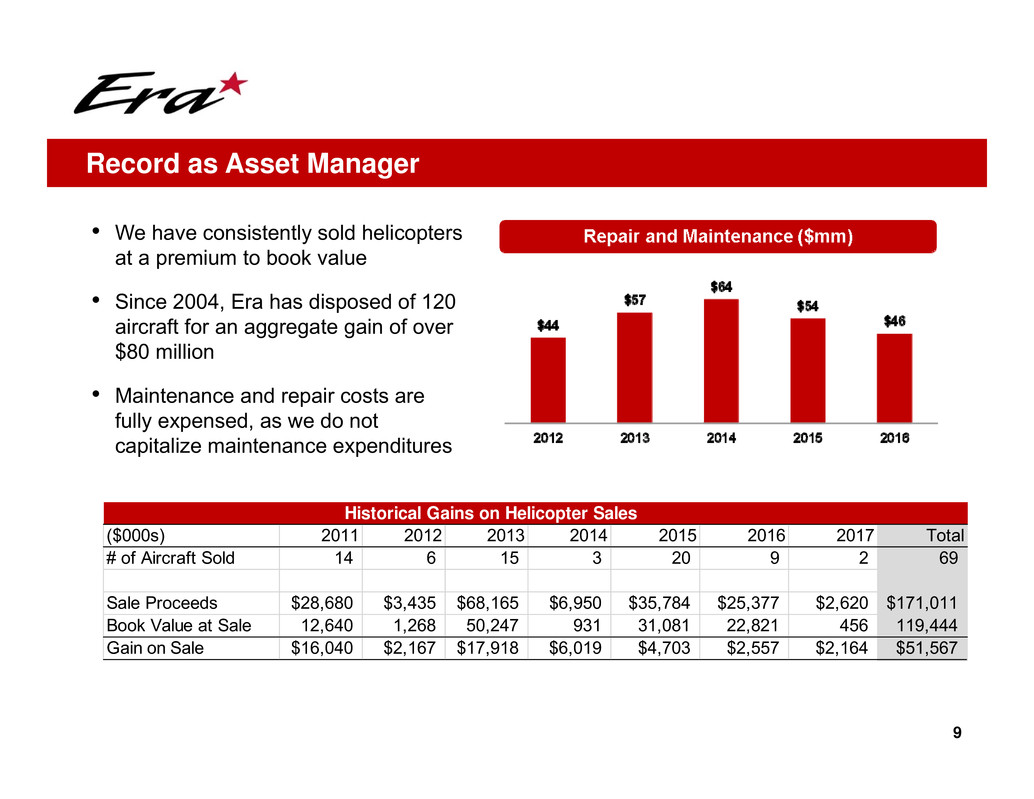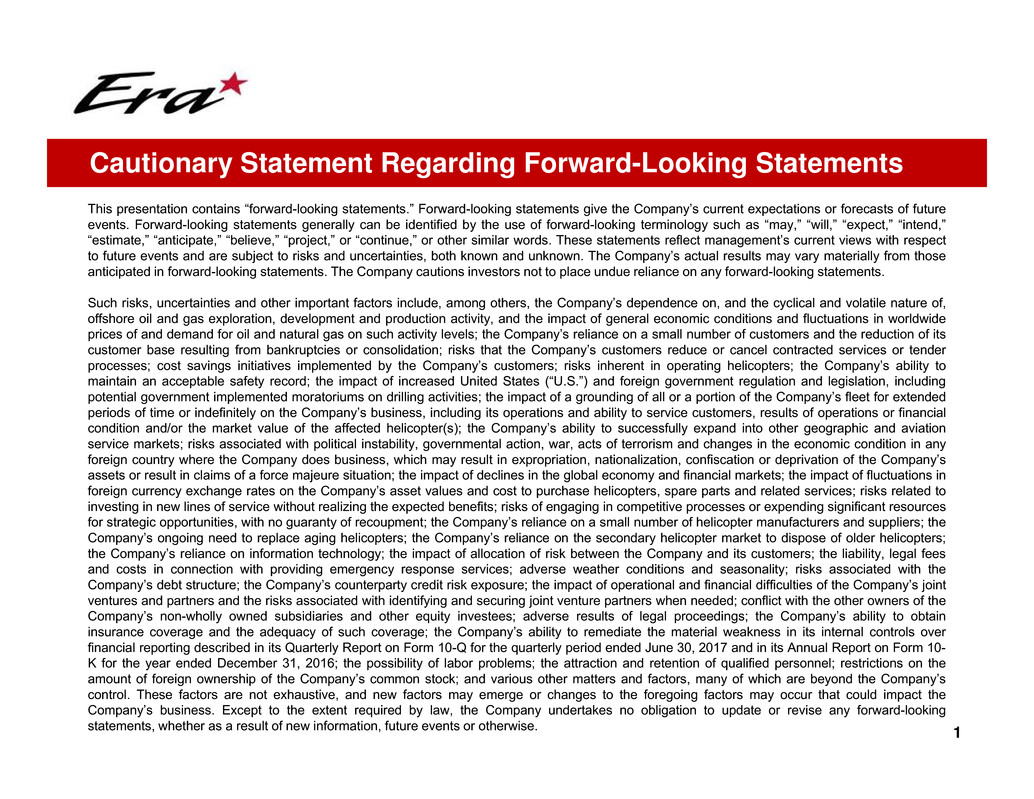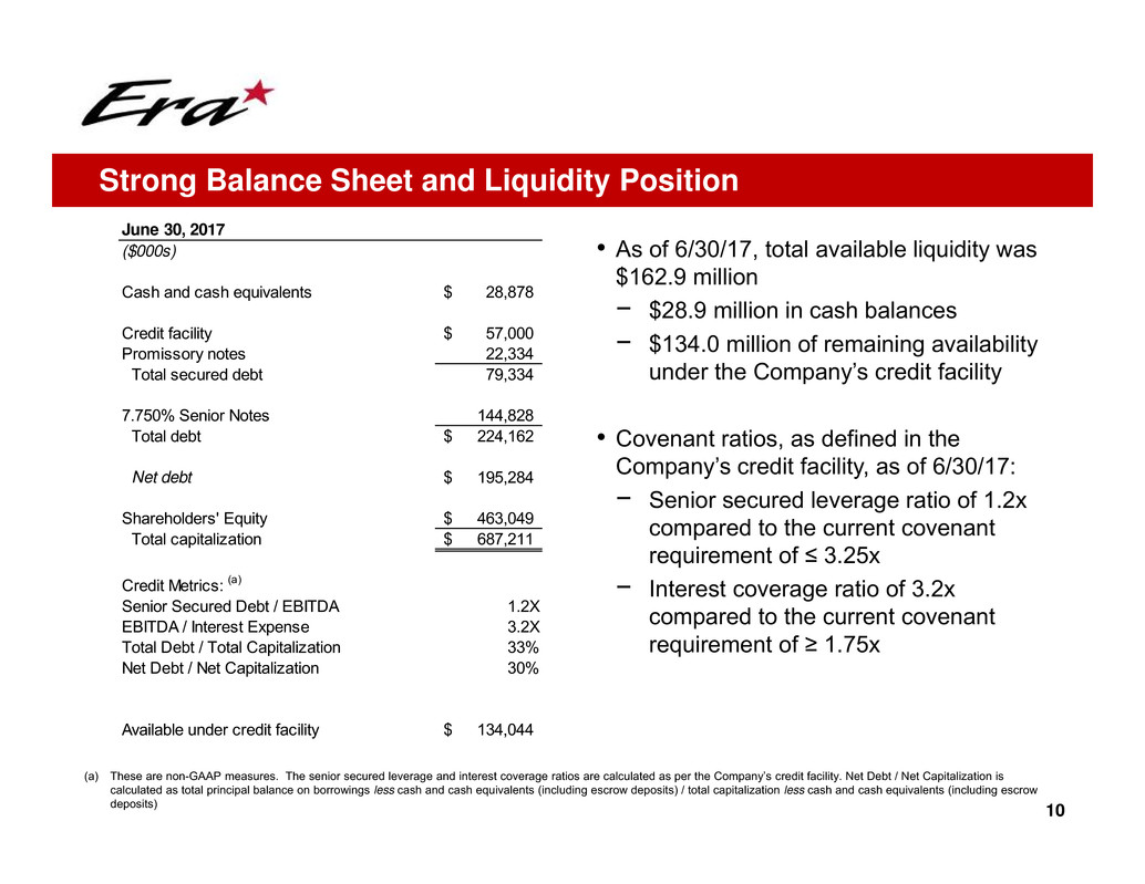 − These charges have been excluded from Adjusted EBITDA to more accurately reflect Era’s historical results as if the Company had not