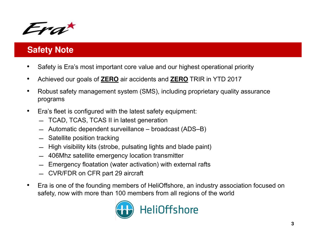 • Era is one of the founding members of HeliOffshore, an industry association focused on
