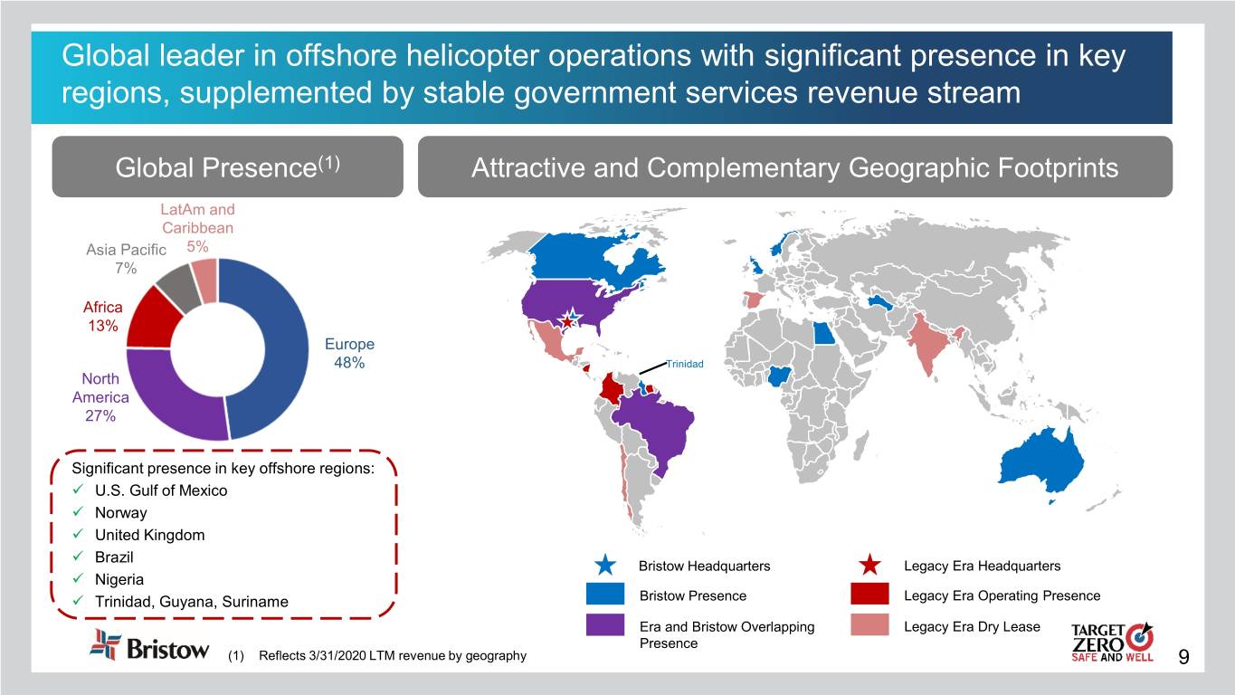 Why Invest in Bristow? Value Creation from End Market Merger Synergies Diversification Diverse and The Global Financial Technologically Leader in Offshore Strength Advanced Fleet Helicopter Transportation Free Cash Flow Generation 8
