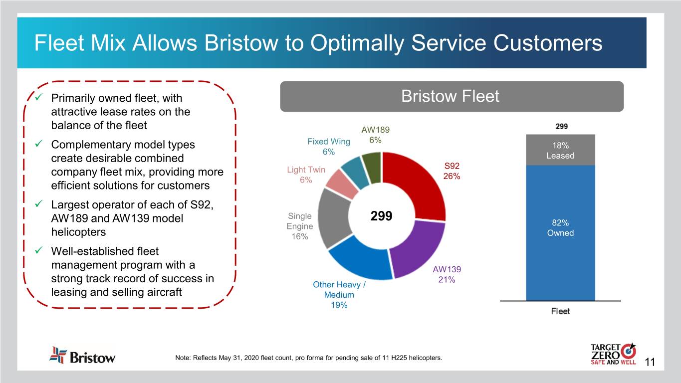 Fleet Overview Owned Leased Total Heavy S92 38 41 79 AW189 17 1 18 H225 3 - 3 Medium AW139 53 8 61 S76 50 - 50 B412 2 - 2 B212 3 - 3 Light B407 19 - 19 AS350 17 - 17 A119 13 - 13 EC135 10 - 10 A109 6 - 6 BO105 2 - 2 Fixed Wing EMB-120ER 6 - 6 E-170LR 1 3 4 SA227 3 - 3 ERJ-135ER - 2 2 Caravan 208 1 - 1 Total 244 55 299 Note: Reflects May 31, 2020 fleet count, pro forma for pending sale of 10 H225 helicopters. 16
