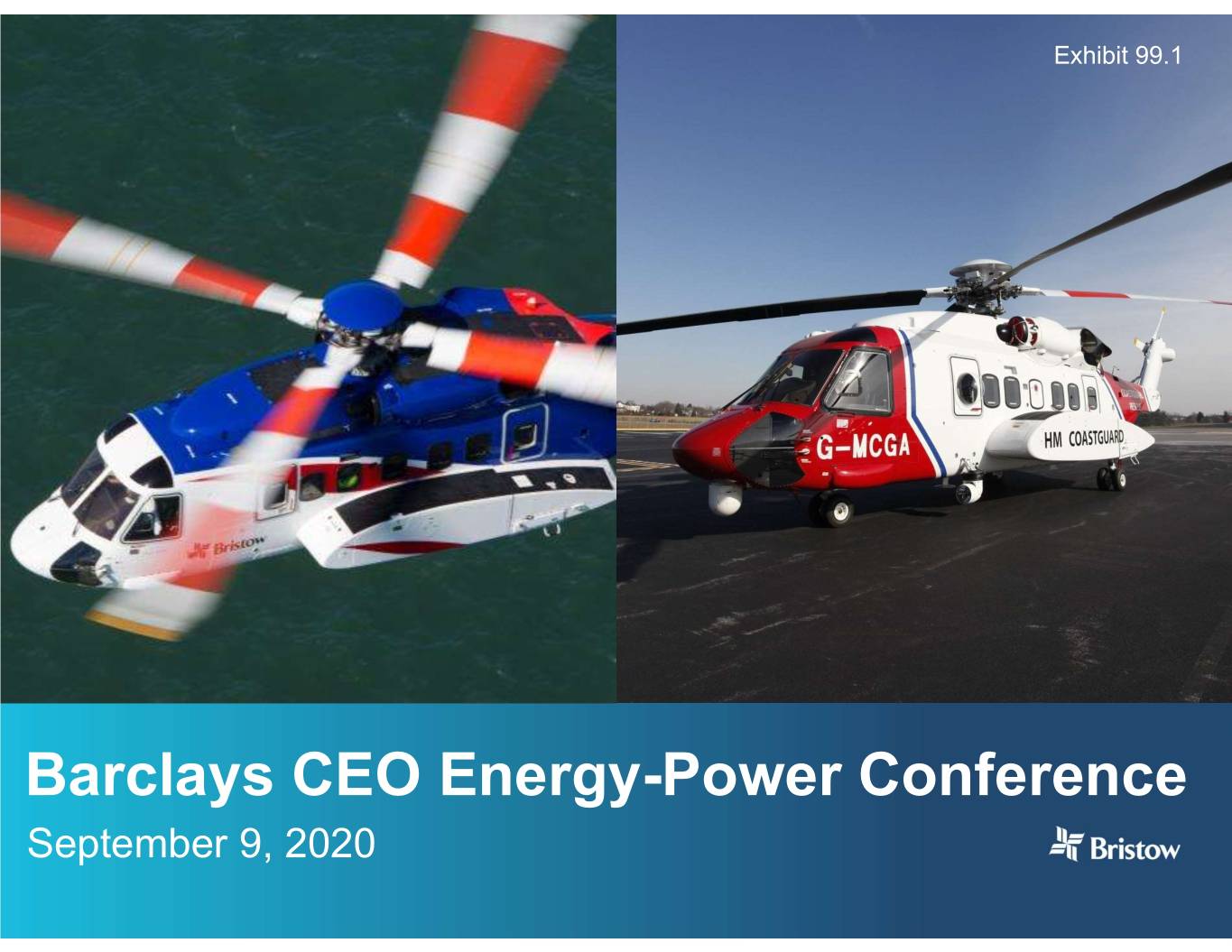 Cautionary Statement Regarding Forward-Looking Statements This presentation contains “forward-looking statements.” Forward-looking statements give Bristow Group Inc.’s (the “Company”) current expectations or forecasts of future events. Forward-looking statements generally can be identified by the use of forward-looking terminology such as “may,” “will,” “expect,” “intend,” “estimate,” “anticipate,” “believe,” “project,” or “continue,” or other similar words. These statements are made under the safe harbor provisions of the Private Securities Litigation Reform Act of 1995, reflect management’s current views with respect to future events and therefore are subject to significant risks and uncertainties, both known and unknown. The Company’s actual results may vary materially from those anticipated in forward-looking statements. The Company cautions investors not to place undue reliance on any forward-looking statements. Forward-looking statements speak only as of the date of the document in which they are made. The Company disclaims any obligation or undertaking to provide any updates or revisions to any forward-looking statement to reflect any change in the Company’s expectations or any change in events, conditions or circumstances on which the forward-looking statement is based that occur after the date hereof. Risks that may affect forward-looking statements include, but are not necessarily limited to, those relating to: the COVID-19 pandemic and related economic repercussions that have resulted, and may continue to result, in a decrease in the price of and demand for oil, which has caused, and may continue to cause, a decrease in the demand for our services; expected cost synergies and other benefits of the merger (the “Merger”) of the entity formerly known as Bristow Group Inc. (“Old Bristow”) and Era Group Inc. (“Era”) might not be realized within the expected time frames, might be less than projected or may not be realized at all; the ability to successfully integrate the operations, accounting and administrative functions of Era and Old Bristow; managing a significantly larger company than before the completion of the Merger; diversion of management time on issues related to integration of the companies; the increase in indebtedness as a result of the Merger; operating costs, customer loss and business disruption following the Merger, including, without limitation, difficulties in maintaining relationships with employees and customers, may be greater than expected; our reliance on a limited number of customers and the reduction of our customer base as a result of bankruptcies or consolidation; risks inherent in operating helicopters; the Company’s ability to maintain an acceptable safety record and level of reliability; the impact of increased U.S. and foreign government regulation and legislation, including potential government implemented moratoriums on drilling activities; the impact of a grounding of all or a portion of the Company’s fleet for extended periods of time or indefinitely on the Company’s business, including its operations and ability to service customers, results of operations or financial condition and/or the market value of the affected helicopters; the Company’s ability to successfully expand into other geographic and aviation service markets; risks associated with political instability, governmental action, war, acts of terrorism and changes in the economic condition in any foreign country where the Company does business, which may result in expropriation, nationalization, confiscation or deprivation of the Company’s assets or result in claims of a force majeure situation; the impact of declines in the global economy and financial markets; the impact of fluctuations in foreign currency exchange rates on the Company’s asset values and cost to purchase helicopters, spare parts and related services; risks related to investing in new lines of aviation service without realizing the expected benefits; risks of engaging in competitive processes or expending significant resources for strategic opportunities, with no guaranty of recoupment; the Company’s reliance on a limited number of helicopter manufacturers and suppliers; the Company’s ongoing need to replace aging helicopters; the Company’s reliance on the secondary helicopter market to dispose of used helicopters and parts; information technology related risks; the impact of allocation of risk between the Company and its customers; the liability, legal fees and costs in connection with providing emergency response services; adverse weather conditions and seasonality; risks associated with the Company’s debt structure; the Company’s counterparty credit risk exposure; the impact of operational and financial difficulties of the Company’s joint ventures and partners and the risks associated with identifying and securing joint venture partners when needed; conflict with the other owners of the Company’s non-wholly owned subsidiaries and other equity investees; adverse results of legal proceedings; risks associated with significant increases in fuel costs; the Company’s ability to obtain insurance coverage and the adequacy and availability of such coverage; the possibility of labor problems; the attraction and retention of qualified personnel; restrictions on the amount of foreign ownership of the Company’s common stock; and various other matters and factors, many of which are beyond the Company’s control. You should not place undue reliance on our forward-looking statements because the matters they describe are subject to known and unknown risks, uncertainties and other unpredictable factors, many of which are beyond our control. Our forward-looking statements are based on the information currently available to us and speak only as of the date hereof. New risks and uncertainties arise from time to time, and it is impossible fo