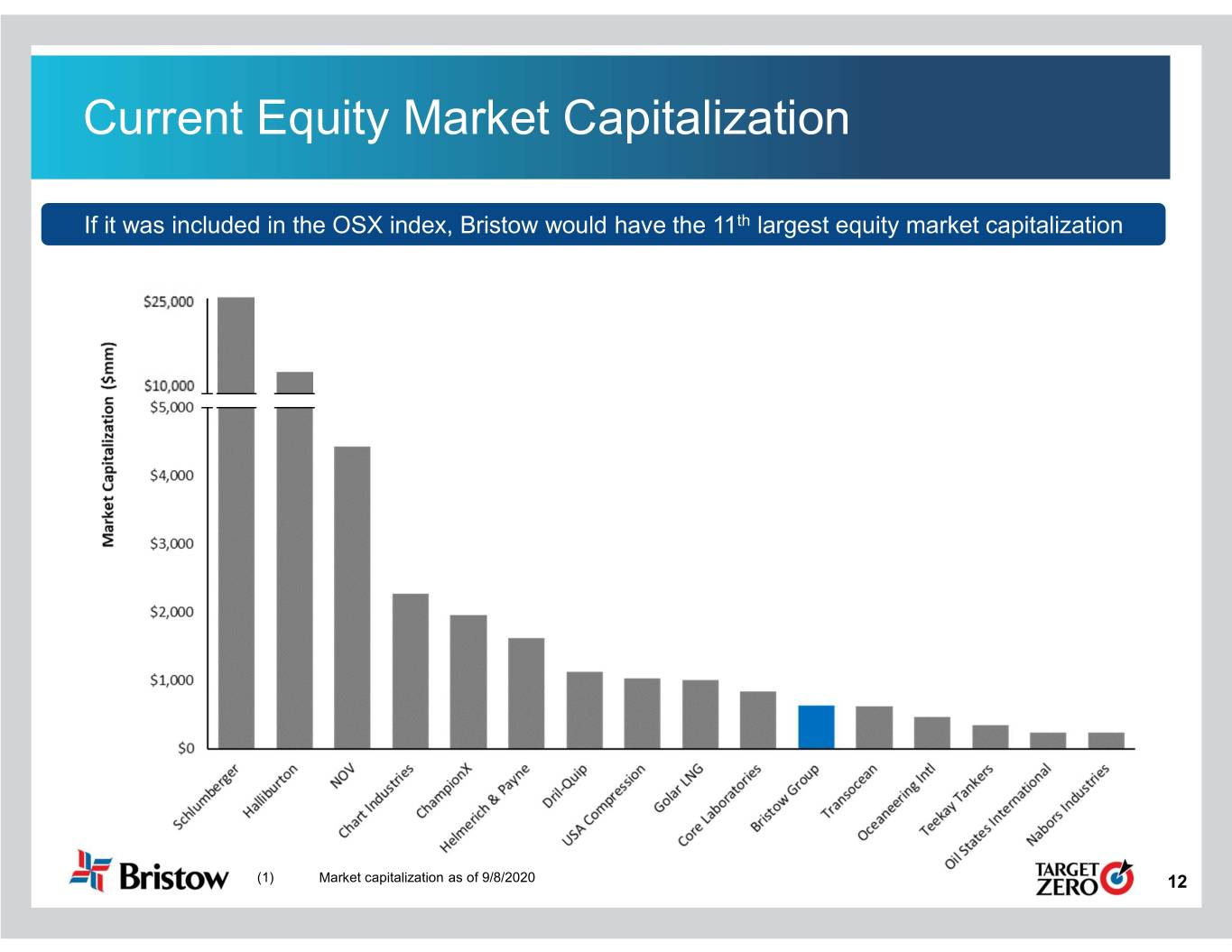 Current Equity Market Capitalization If it was included in the OSX index, Bristow would have the 11th largest equity market capitalization (1) Market capitalization as of 9/8/2020 12