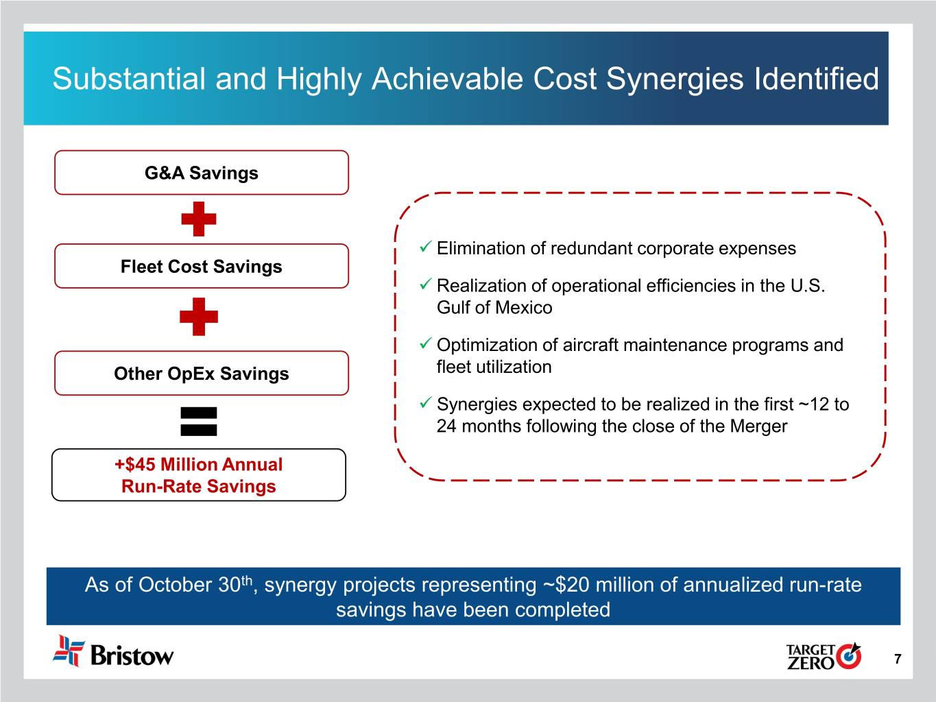 Substantial and Highly Achievable Cost Synergies Identified Substantial and Highly Achievable Cost Synergies Identified G&A Savings Elimination of redundant corporate expenses Fleet Cost Savings Realization of operational efficiencies in the U.S. Gulf of Mexico Optimization of aircraft maintenance programs and Other OpEx Savings fleet utilization Synergies expected to be realized in the first ~12 to 24 months following the close of the Merger +$45 Million Annual Run-Rate Savings As of October 30th, synergy projects representing ~$20 million of annualized run-rate savings have been completed 7