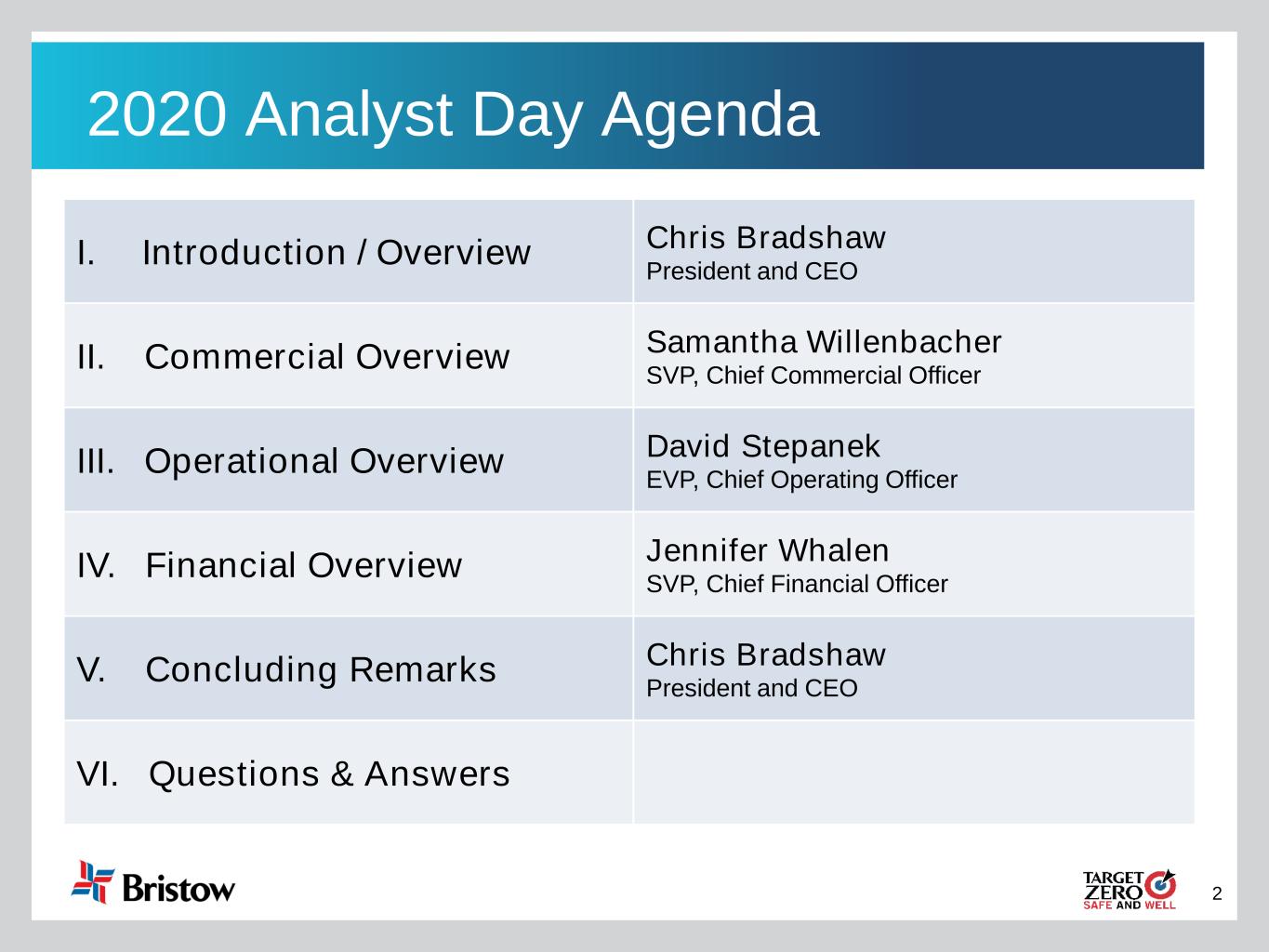 2 2020 Analyst Day Agenda I. Introduction / Overview Chris Bradshaw President and CEO II. Commercial Overview Samantha Willenbacher SVP, Chief Commercial Officer III. Operational Overview David Stepanek EVP, Chief Operating Officer IV. Financial Overview Jennifer Whalen SVP, Chief Financial Officer V. Concluding Remarks Chris Bradshaw President and CEO VI. Questions & Answers