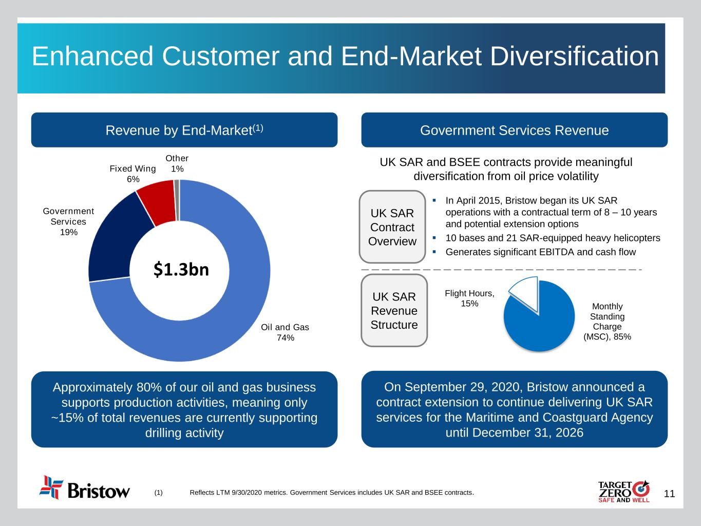10 Global Presence (1) Attractive Geographic Footprint Significant presence in key offshore regions: ✓ U.S. Gulf of Mexico ✓ Norway ✓ United Kingdom ✓ Brazil ✓ Nigeria ✓ Trinidad, Guyana, Suriname (1) Reflects pro forma 9/30/2020 LTM revenue $1.3 bn Operating Presence Dry Lease/PartnershipBristow Headquarters Trinidad Significant Presence in Key Regions