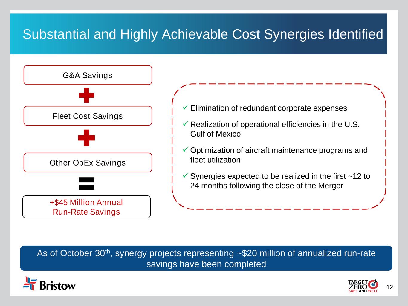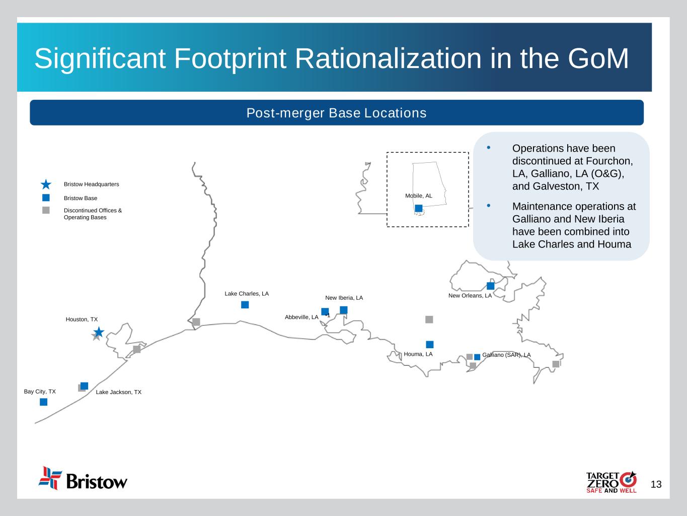 12 Substantial and Highly Achievable Cost Synergies Identified G&A Savings Other OpEx Savings +$45 Million Annual Run-Rate Savings Fleet Cost Savings ✓ Elimination of redundant corporate expenses ✓ Realization of operational efficiencies in the U.S. Gulf of Mexico ✓ Optimization of aircraft maintenance programs and fleet utilization ✓ Synergies expected to be realized in the first ~12 to 24 months following the close of the Merger Substantial and Highly Achievable Cost Synergies Identified As of October 30th, synergy projects representing ~$20 million of annualized run-rate savings have been completed