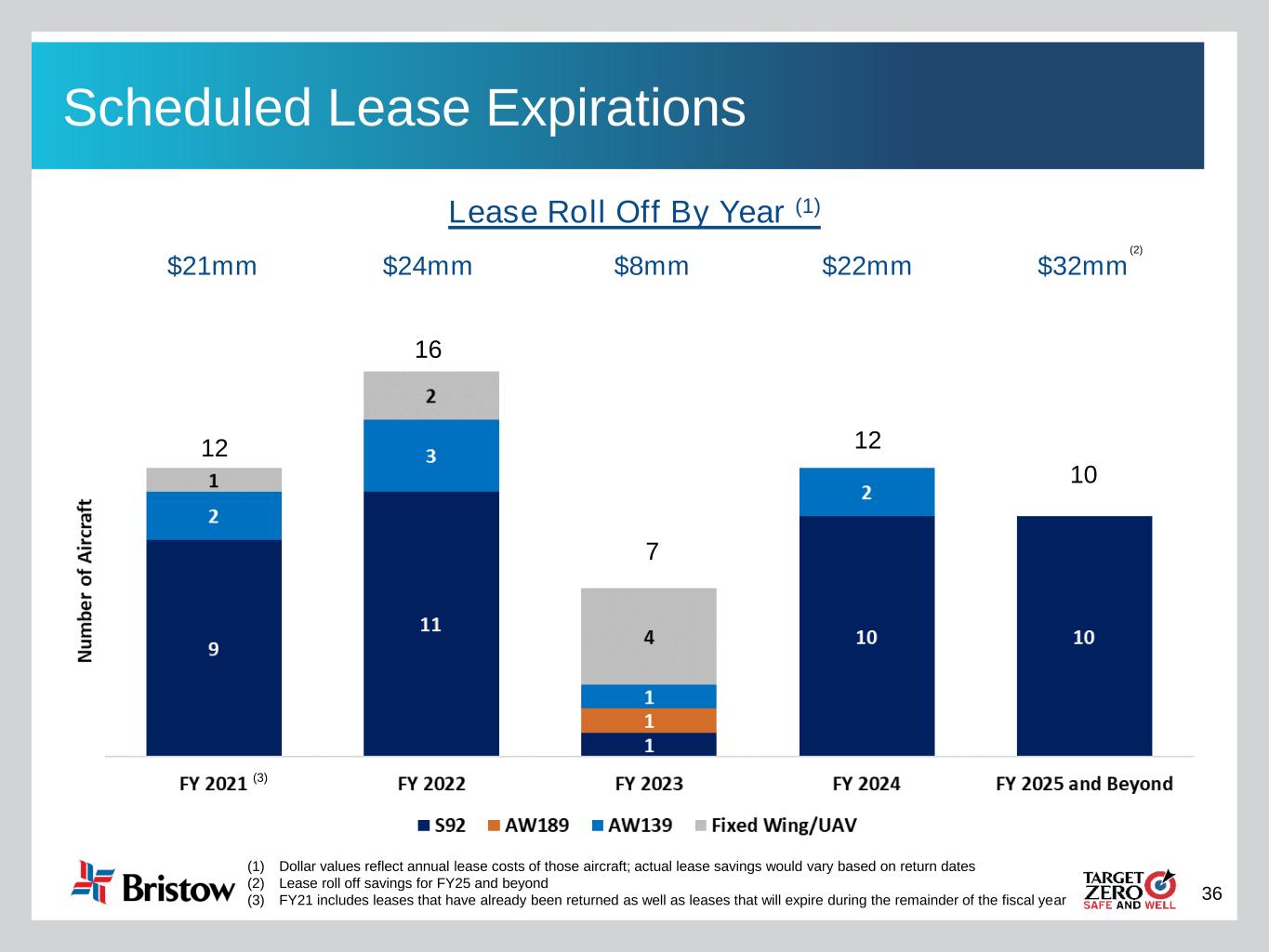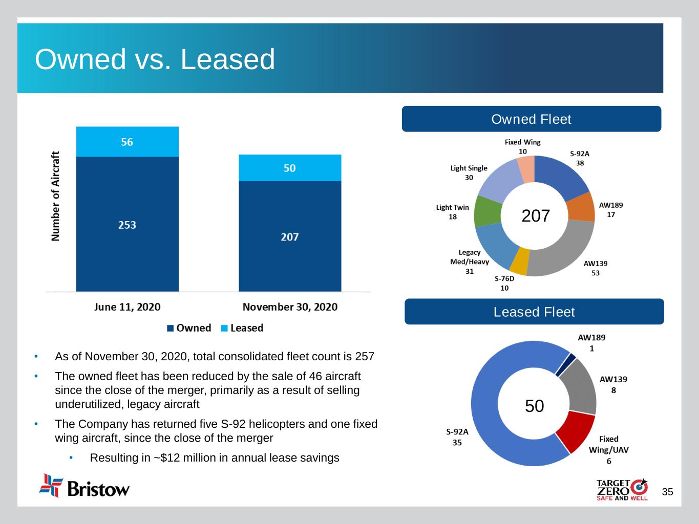 35 Owned vs. Leased Leased Fleet Owned Fleet • As of November 30, 2020, total consolidated fleet count is 257 • The owned fleet has been reduced by the sale of 46 aircraft since the close of the merger, primarily as a result of selling underutilized, legacy aircraft • The Company has returned five S-92 helicopters and one fixed wing aircraft, since the close of the merger • Resulting in ~$12 million in annual lease savings 50 207