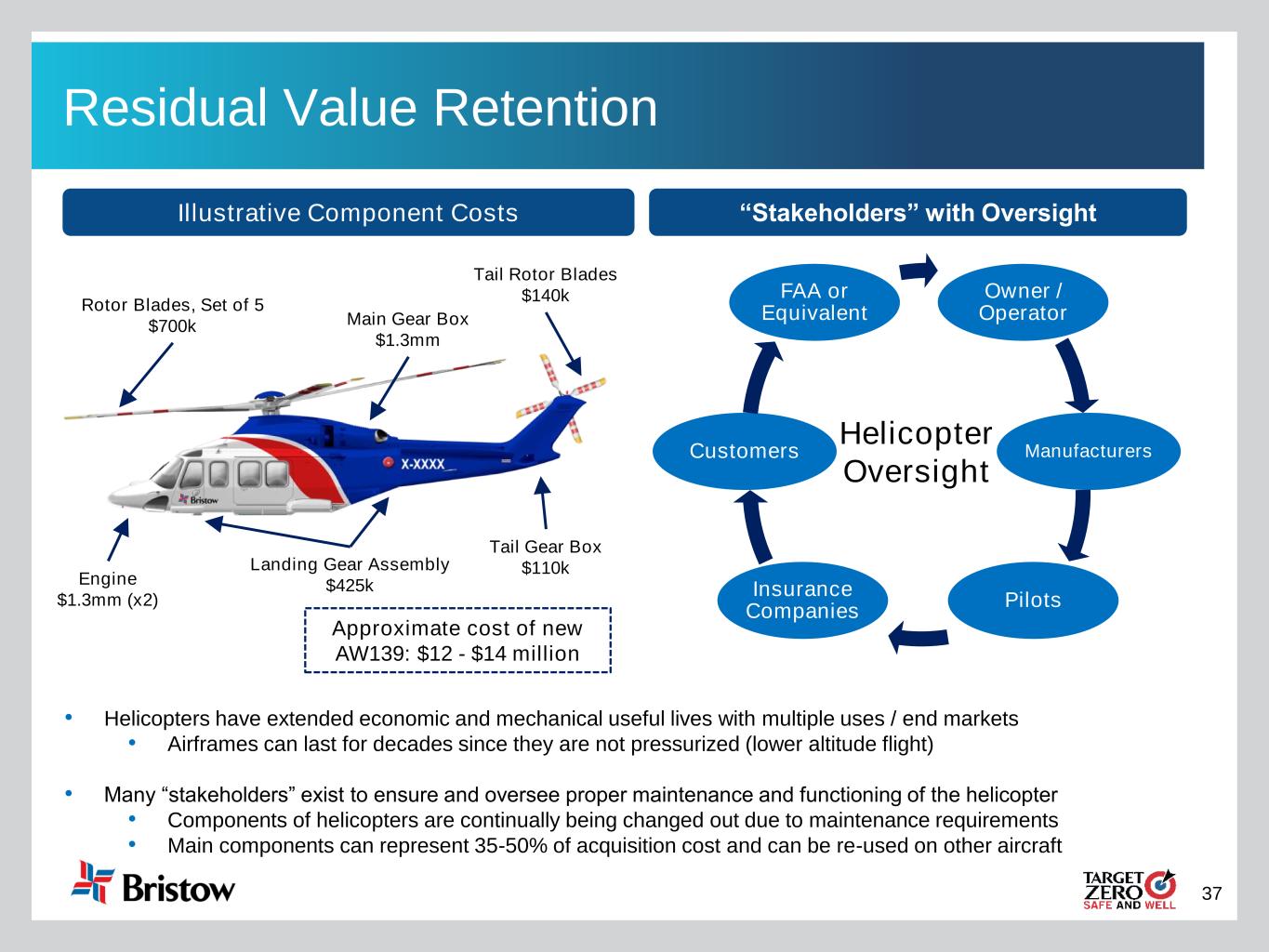 37 Residual Value Retention “Stakeholders” with OversightIllustrative Component Costs • Helicopters have extended economic and mechanical useful lives with multiple uses / end markets • Airframes can last for decades since they are not pressurized (lower altitude flight) • Many “stakeholders” exist to ensure and oversee proper maintenance and functioning of the helicopter • Components of helicopters are continually being changed out due to maintenance requirements • Main components can represent 35-50% of acquisition cost and can be re-used on other aircraft Owner / Operator Manufacturers Pilots Insurance Companies Customers FAA or Equivalent Helicopter Oversight Rotor Blades, Set of 5 $700k Main Gear Box $1.3mm Tail Rotor Blades $140k Tail Gear Box $110kLanding Gear Assembly $425kEngine $1.3mm (x2) Approximate cost of new AW139: $12 - $14 million