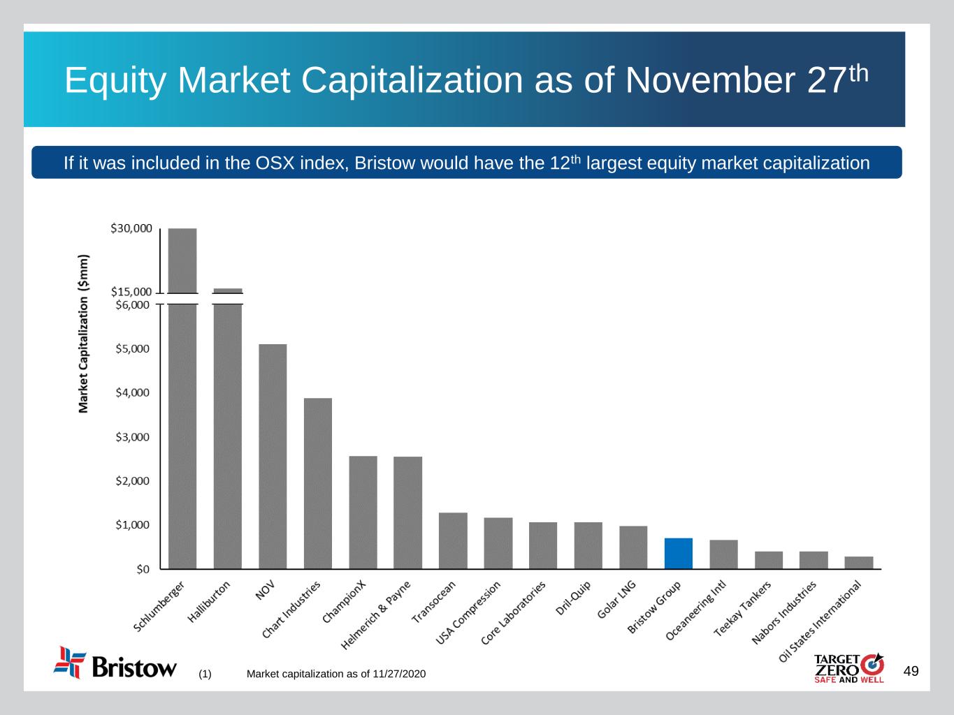 49 Equity Market Capitalization as of November 27th If it was included in the OSX index, Bristow would have the 12th largest equity market capitalization (1) Market capitalization as of 11/27/2020