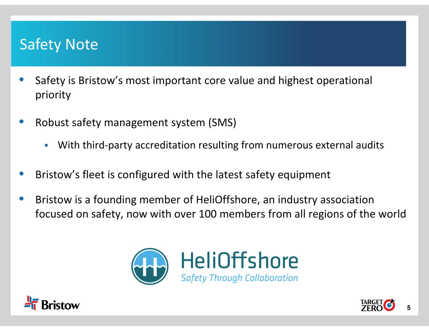 5 Safety Note • Safety is Bristow’s most important core value and highest operational priority • Robust safety management system (SMS) With third-party accreditation resulting from numerous external audits • Bristow’s fleet is configured with the latest safety equipment • Bristow is a founding member of HeliOffshore, an industry association focused on safety, now with over 100 members from all regions of the world
