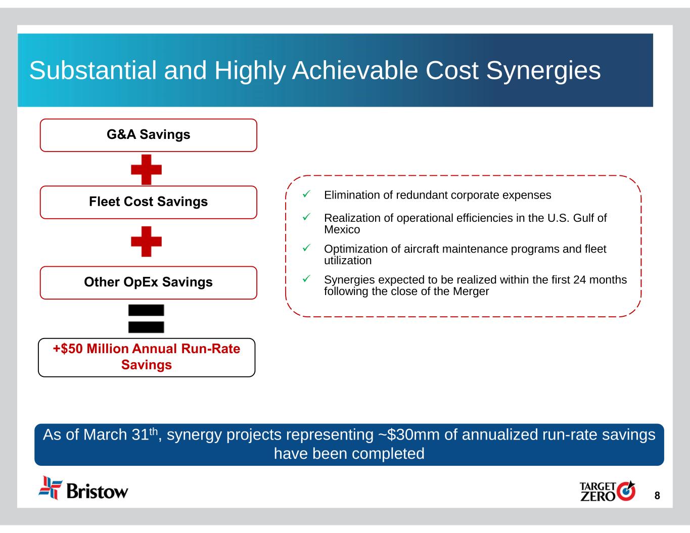 8 G&A Savings Other OpEx Savings +$50 Million Annual Run-Rate Savings Fleet Cost Savings Substantial and Highly Achievable Cost Synergies As of March 31th, synergy projects representing ~$30mm of annualized run-rate savings have been completed Elimination of redundant corporate expenses Realization of operational efficiencies in the U.S. Gulf of Mexico Optimization of aircraft maintenance programs and fleet utilization Synergies expected to be realized within the first 24 months following the close of the Merger