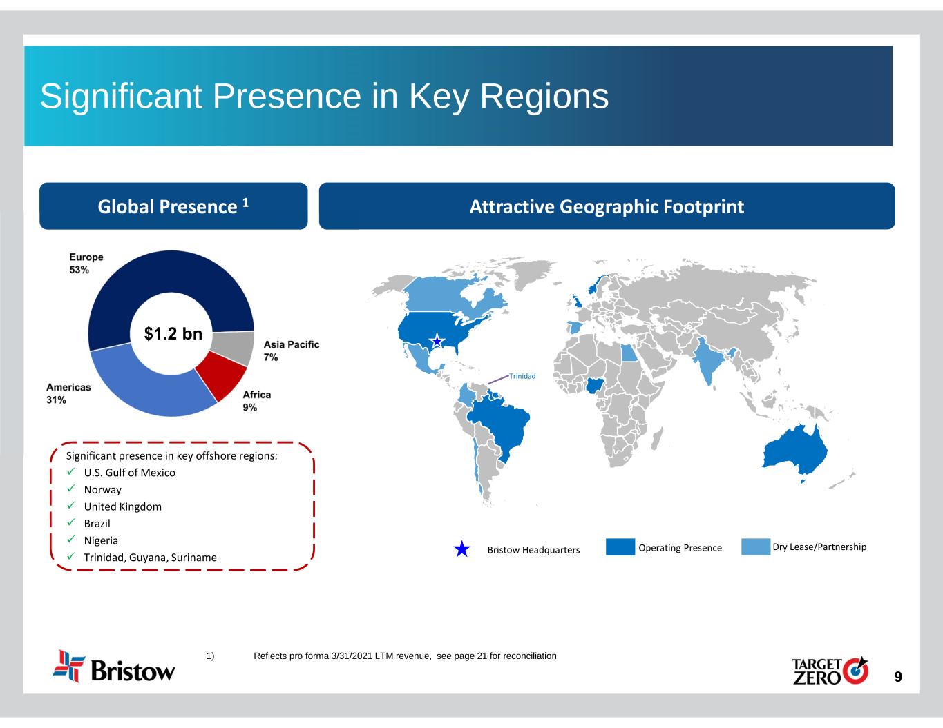 2 Cautionary Statement Regarding Forward-Looking Statements This presentation contains “forward-looking statements.” Forward-looking statements represent Bristow Group Inc.’s (the “Company”) current expectations or forecasts of future events. Forward- looking statements generally can be identified by the use of forward-looking terminology such as “may,” “will,” “expect,” “intend,” “estimate,” “anticipate,” “believe,” “project,” or “continue,” or other similar words. These statements are made under the safe harbor provisions of the Private Securities Litigation Reform Act of 1995, reflect management’s current views with respect to future events and therefore are subject to significant risks and uncertainties, both known and unknown. The Company’s actual results may vary materially from those anticipated in forward-looking statements. The Company cautions investors not to place undue reliance on any forward-looking statements. Forward-looking statements speak only as of the date of the document in which they are made. The Company disclaims any obligation or undertaking to provide any updates or revisions to any forward-looking statement to reflect any change in the Company’s expectations or any change in events, conditions or circumstances on which the forward-looking statement is based that occur after the date hereof. Risks that may affect forward-looking statements include, but are not necessarily limited to, those relating to: the COVID-19 pandemic and related economic repercussions have resulted, and may continue to result, in a decrease in the price of and demand for oil, which has caused, and may continue to cause, a decrease in the demand for our services; expected cost synergies and other benefits of the merger (the “Merger”) of the entity formerly known as Bristow Group Inc. (“Old Bristow”) and Era Group Inc. (“Era”) might not be realized within the expected time frames, might be less than projected or may not be realized at all; the ability to successfully integrate the operations, accounting and administrative functions of Era and Old Bristow; managing a significantly larger company than before the completion of the Merger; diversion of management time on issues related to integration of the companies; the increase in indebtedness as a result of the Merger; operating costs, customer loss and business disruption following the Merger, including, without limitation, difficulties in maintaining relationships with employees and customers, may be greater than expected; our reliance on a limited number of customers and the reduction of our customer base as a result of bankruptcies or consolidation; the possibility that we may be unable to maintain compliance with covenants in our financing agreements; fluctuations in worldwide prices of and demand for oil and natural gas; fluctuations in levels of oil and natural gas exploration, development and production activities; fluctuations in the demand for our services; the possibility that we may impair our long-lived assets, including goodwill, inventory, property and equipment and investments in unconsolidated affiliates; our ability to implement operational improvement efficiencies with the objective of rightsizing our global footprint and further reducing our cost structure; the possibility of significant changes in foreign exchange rates and controls, including as a result of the U.K. having exited from the European Union (“E.U.”) (“Brexit”); the impact of continued uncertainty surrounding the effects Brexit will have on the British, E.U. and global economies and demand for oil and natural gas; potential effects of increased competition; the risk of future material weaknesses we may identify while we work to align policies, principles, and practices of the combined company following the Merger or any other failure by us to maintain effective internal controls; the possibility that we may be unable to re-deploy our aircraft to regions with greater demand; the possibility of changes in tax and other laws and regulations, and policies, including, without limitation, actions of the Biden Administration that impact oil and gas operations or favor renewable energy projects in the U.S.; the possibility that we may be unable to dispose of older aircraft through sales into the aftermarket; general economic conditions, including the capital and credit markets; the possibility that segments of our fleet may be grounded for extended periods of time or indefinitely; the existence of operating risks inherent in our business, including the possibility of declining safety performance; the possibility of political instability, war or acts of terrorism in any of the countries where we operate; the possibility that reductions in spending on aviation services by governmental agencies could lead to modifications of our search and rescue (“SAR”) contract terms with the U.K. government, our contracts with the Bureau of Safety and Environmental Enforcement ("BSEE") or delays in receiving payments under such contracts; and our reliance on a limited number of helicopter manufacturers and suppliers. You should not place undue reliance on our forward-looking statements because the matters they describe are subject to known and unknown risks, uncertainties and other unpredictable factors, many of which are beyond our control. Our forward-looking statements are based on the information currently available to us and speak only as of the date hereof. New risks and uncertainties arise from time to time, and it is impossible for us to predict these matters or how they may affect us. We have included important factors in the section entitled “Risk Factors” in the Company’s Annual Report on Form 10-K for the fiscal year ended March 31, 2021, which we believe over time, could cause our actual results, performance or achievements to differ from the anticipated results, performance or achieveme
