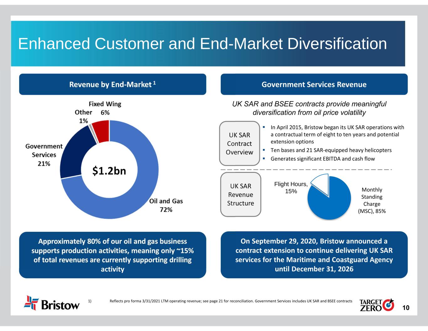 9 Significant Presence in Key Regions Global Presence 1 Attractive Geographic Footprint Significant presence in key offshore regions: U.S. Gulf of Mexico Norway United Kingdom Brazil Nigeria Trinidad, Guyana, Suriname 1) Reflects pro forma 3/31/2021 LTM revenue, see page 21 for reconciliation Operating Presence Dry Lease/PartnershipBristow Headquarters Trinidad $1.2 bn