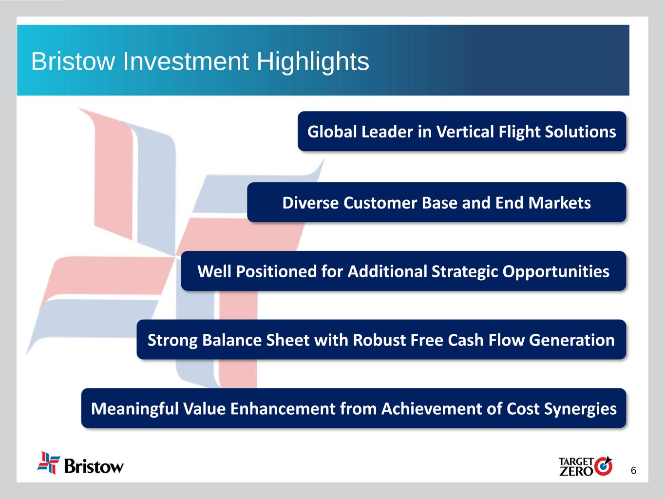 5 Safety Note • Safety is Bristow’s most important core value and highest operational priority • Robust safety management system (SMS) ▪ With third-party accreditation resulting from numerous external audits • Bristow’s fleet is configured with the latest safety equipment • Bristow is a founding member of HeliOffshore, an industry association focused on safety, now with over 100 members from all regions of the world