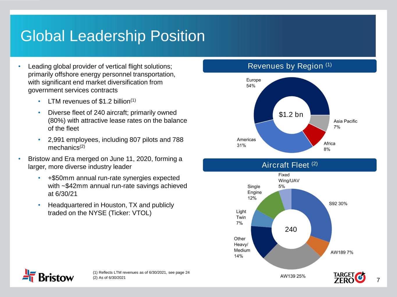 6 Bristow Investment Highlights Diverse Customer Base and End Markets Well Positioned for Additional Strategic Opportunities Strong Balance Sheet with Robust Free Cash Flow Generation Meaningful Value Enhancement from Achievement of Cost Synergies Global Leader in Vertical Flight Solutions