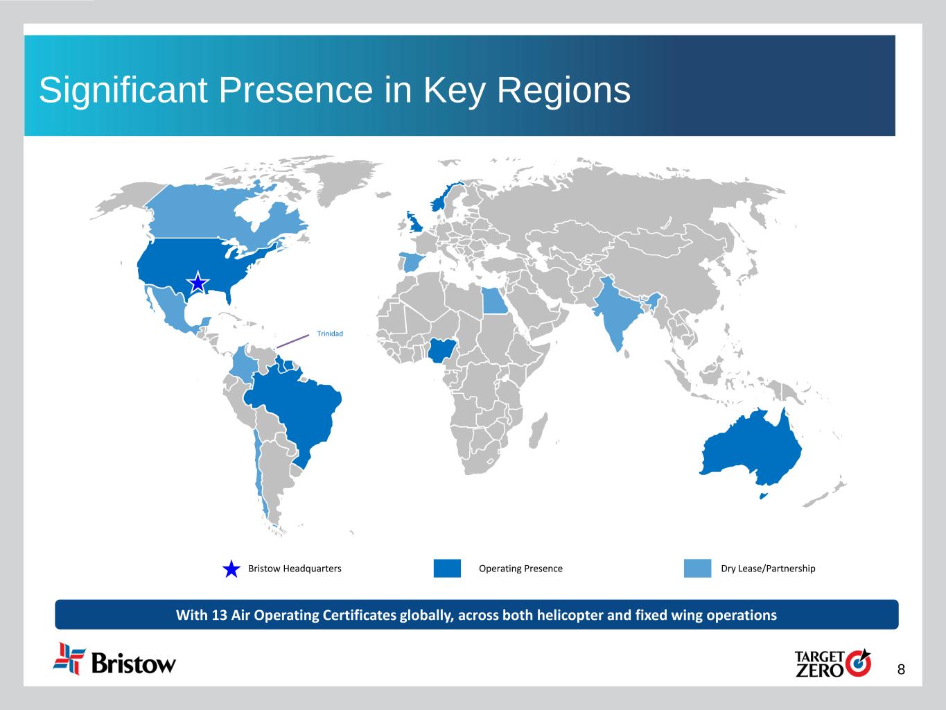 8 Significant Presence in Key Regions Operating Revenue Operating Presence Dry Lease/PartnershipBristow Headquarters Trinidad With 13 Air Operating Certificates globally, across both helicopter and fixed wing operations
