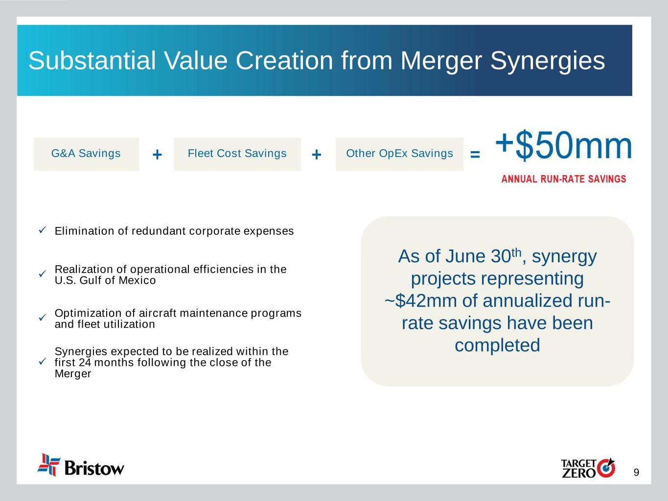 9 Substantial Value Creation from Merger Synergies As of June 30th, synergy projects representing ~$42mm of annualized run- rate savings have been completed ✓ Elimination of redundant corporate expenses ✓ Realization of operational efficiencies in the U.S. Gulf of Mexico ✓ Optimization of aircraft maintenance programs and fleet utilization ✓ Synergies expected to be realized within the first 24 months following the close of the Merger G&A Savings Fleet Cost Savings Other OpEx Savings