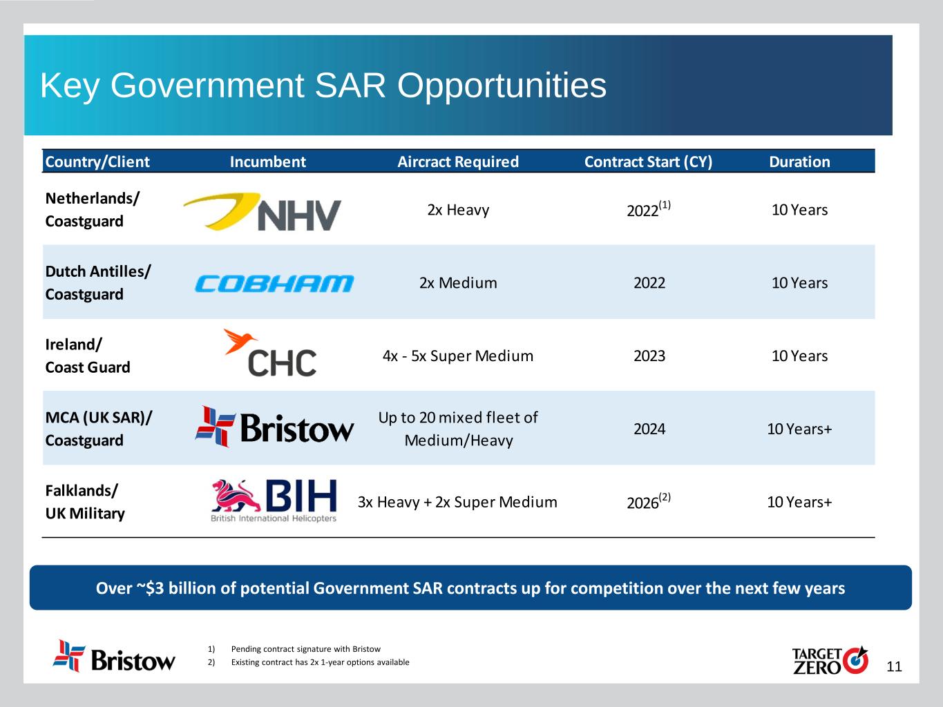 11 Key Government SAR Opportunities 1) Pending contract signature with Bristow 2) Existing contract has 2x 1-year options available Over ~$3 billion of potential Government SAR contracts up for competition over the next few years Country/Client Incumbent Aircract Required Contract Start (CY) Duration Netherlands/ Coastguard 2x Heavy 2022(1) 10 Years Dutch Antilles/ Coastguard 2x Medium 2022 10 Years Ireland/ Coast Guard 4x - 5x Super Medium 2023 10 Years MCA (UK SAR)/ Coastguard Up to 20 mixed fleet of Medium/Heavy 2024 10 Years+ Falklands/ UK Military 3x Heavy + 2x Super Medium 2026(2) 10 Years+