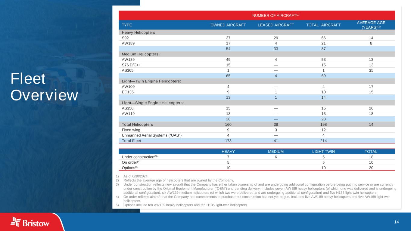 13 Appendix Fleet Overview1 2 Reconciliation of Adjusted EBITDA 3 Adjusted Free Cash Flow Reconciliation 4 Operating Revenues and Flight Hours by Line of Service 5 LTM Operating Revenues by Region