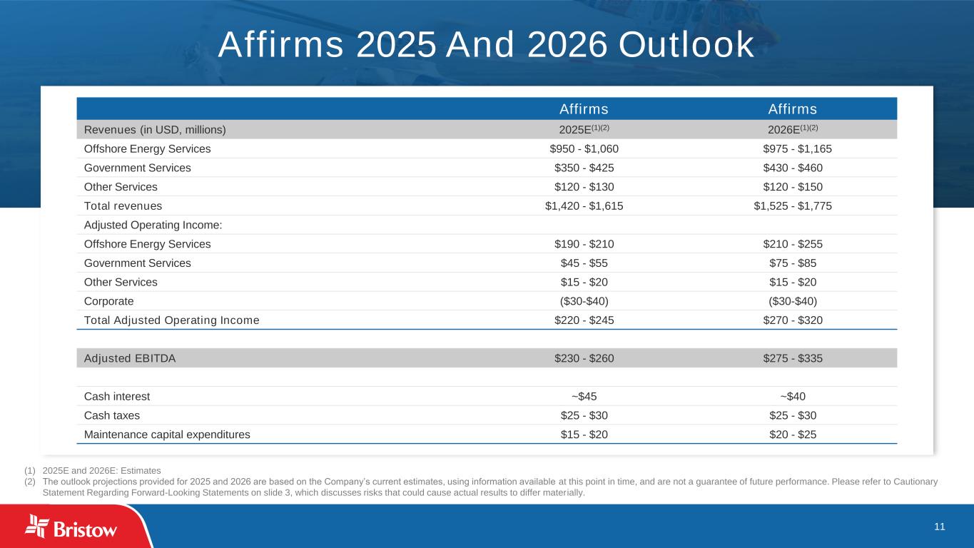 11 s (1) 2025E and 2026E: Estimates (2) The outlook projections provided for 2025 and 2026 are based on the Company’s current estimates, using information available at this point in time, and are not a guarantee of future performance. Please refer to Cautionary Statement Regarding Forward-Looking Statements on slide 3, which discusses risks that could cause actual results to differ materially. Affirms 2025 And 2026 Outlook Affirms Affirms Revenues (in USD, millions) 2025E(1)(2) 2026E(1)(2) Offshore Energy Services $950 - $1,060 $975 - $1,165 Government Services $350 - $425 $430 - $460 Other Services $120 - $130 $120 - $150 Total revenues $1,420 - $1,615 $1,525 - $1,775 Adjusted Operating Income: Offshore Energy Services $190 - $210 $210 - $255 Government Services $45 - $55 $75 - $85 Other Services $15 - $20 $15 - $20 Corporate ($30-$40) ($30-$40) Total Adjusted Operating Income $220 - $245 $270 - $320 Adjusted EBITDA $230 - $260 $275 - $335 Cash interest ~$45 ~$40 Cash taxes $25 - $30 $25 - $30 Maintenance capital expenditures $15 - $20 $20 - $25